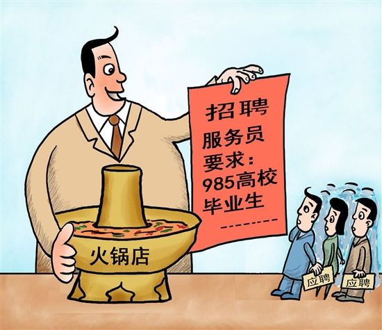 点评:只要是你情我愿的“双向选择”,火锅店招聘“985”没什么值得大惊小怪。对毕业生而言,“985”冲着20万元年薪也没什么不可以。——杨柳