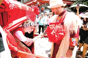 20多天前的一场印度情侣婚礼,让整个滇池湖畔都笼上了一层异域风情,也成功刷屏了昆明人朋友圈。人们不禁好奇,为啥印度情侣会邀请一众亲友来云南完婚?其实也不奇怪,毕竟除了印度朋友,早在几年前也曾有国内明星来滇举行婚礼。 如今,云南正在打造世界一流“健康生活目的地”,良好的生态环境、独特的少数民族文化、日趋完善的接待能力,使得云南发展高端婚庆市场,打造最美婚庆目的地迎来新的契机。 镜头 古色古香的纳西婚礼 迎着古城里的第一缕阳光,身穿纳西族传统服饰的阿妈,背着米、端着红糖、带上茶,跟着迎亲的队伍,穿梭在丽江古城的大街小巷;四合院里已铺上了松针、挂上了红绸、摆上了蜜饯、喜饼,备上了酒席,等着迎亲队伍的归来。 “在太阳升起的吉时,我穿过丽江古城迎娶你。”近年来,特别是少数民族聚居的地区,婚礼上开始有了民族风,举办一场地地道道的民族婚礼成了又一种时尚。纳西婚礼,悄然回归视野。 在刚过去的冬至,一场纳西婚礼又刷屏了丽江人的朋友圈。在丽江古城“纳西人家”,身着纳西传统服饰的新郎新娘在东巴的祝福下,举行了一场完完整整的纳西婚礼。东巴仪式、美丽的喜服、富有特色的喜宴,纳西小院的传统仪式, 吸引了不少游客前来拍照。 观察 纳西婚礼近年走俏 每个周六,是“纳西人家”最繁忙的时候。下午两点半,这里会定期举办纳西族传统东巴婚礼展演。在婚礼上,不仅可以看到传统的纳西老物件,也能了解纳西文化中的旧婚俗,还可以品尝纳西窨酒、鸡豆凉粉、丽江粑粑和纳西喜饼等纳西传统饮食文化。 “这些年可以说正在完成从展演、展示纳西婚俗到婚礼目的地的转变, 越来越多的本地新人开始回归传统婚礼。”“纳西人家”负责人、丽江喜鹤民俗文化有限公司负责人和育苗说,如今,一个月有六七对来找“纳西人家”办婚礼的新人,本地人和外地人各占一半,其中海外新人占了外地人里的一半。“外国人对中国传统文化的兴趣更大一些,选择纳西婚礼仪式的国内新人,大都来自北上广深一带。” 在和育苗看来,近几年,纳西传统婚俗开始回归,公司从一开始的展示 、体验活动为主,转变为开始承接纳西传统婚礼。和育苗介绍 ,传统的纳西婚礼,新人在进门时首先举行跨火盆仪式,跨过这个烧有几种辟邪树叶的火盆有除晦气的寓意。在经过名为“素注”(捆绑灵魂)、 “罢麻罢”等环节后,夫妻结合便如铁铸一般永不分别,东巴还要为新人点酥油增福。 “经济方面谈不上可观,不过社会效益很明显,更多的本地人不一定会来‘纳西人家’举行仪式,但不少人家会在婚礼上加入传统元素,这是最大的成功。”和育苗说,丽江的文化、景色,包括如酒店、花海等硬件方面的提升,吸引着越来越多的人前来,丽江作为婚礼目的地也日趋成熟。 发展 “婚礼目的地” 云南被贴新标签 婚姻是人生大事,举行一场浪漫婚礼显然是一对新人生命中最为重要的时刻。近几年来,选择一个心之向往的地方,在海外举办一场梦幻婚礼,已经成为国内外一些富裕家庭的选择,比如巴厘岛、普吉岛、马尔代夫、希腊、巴黎等,时常作为婚礼目的地出现在人们的视线中。 云南被贴上“婚礼目的地”的标签,还得从2011年说起。那一年,主持人谢娜、歌手张杰在香格里拉的普达措国家公园举行了盛大的婚礼,那场轰动娱乐圈的婚礼让迪庆香格里拉名声大噪,这个最接近天堂的地方受到海内外游客的追捧。 而上个月在昆明人朋友圈刷屏的印度情侣婚礼,选在昆明滇池湖畔的洲际酒店,印度新人及其亲友的身影遍布云南民族村、海埂大坝等旅游景点。其实,印度婚礼是印度传统文化特色之一,印度人不仅把婚礼作为重要的宗教仪式,婚礼更是家庭社会地位的象征。除在印度本土举行大型婚庆活动外,印度家庭还热衷在海外举行大型婚礼庆典活动,其中泰国因地缘优势、相对低廉的成本以及汇率优势,成为印度人在海外举办婚礼的首选目的地。 一位亲友团成员在接受采访时表示,家族成员中也有新人出国举办过婚礼,但来昆明还是第一次。这里湖光山色、清新空气,少数民族文化多姿多彩,让他们都觉得十分新奇。 延伸 婚礼市场“蛋糕” 云南多方早已“虎视眈眈” 其实,一场婚礼并非两人举行仪式那么简单,还涉及景区、摄像、食宿、交通、购物等诸多配套服务,如此一来,承接一场婚礼所带来的经济效益十分可观,也因如此,云南多方早已瞄准这块市场“蛋糕”。 其中不乏星级酒店。比如承接此次印度情侣婚礼的昆明洲际酒店,紧邻滇池湖畔,与云南民族村、海埂公园相距仅约1公里,优越的地理条件,良好的生态环境,高品质的软硬件设施,让这家酒店赢得此次印度婚礼团队的大单。2017年,在云南抚仙湖希尔顿酒店举办的“幻梦归真”目的地主题婚礼节上,其酒店负责人表示,要打造云南纯美目的地婚礼,为新人提供梦幻婚礼仪式的视觉盛宴。 在2018中国(昆明)国际婚庆文旅博览会上,主办方希望依托云南丰富多彩的民族婚嫁文化,汇聚全球特色婚嫁文化,融通云南婚嫁产业链,努力把云南打造成为全国婚嫁目的地。 涨知识 印度人在泰国完婚 平均每场消费34万美元 印度与云南有着良好地缘优势。以印度来看,印度婚庆产业有着巨大的市场,据估计,印度人每年的婚庆开支高达250亿美元。自2013年起,印度婚庆市场规模以每年20%的增速递增。印度