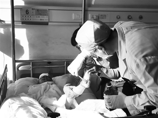 提 醒 意外发生断肢应干燥低温保存 920医院骨科住院总医师王腾也提醒,不慎因外伤导致肢体离断后,首先应对伤口进行包扎止血,避免失血量太大。而对于离断肢体正确的保存方法,应是干燥低温保存。将离断下来的肢体用干净且干燥的布料或毛巾包裹,放入干净不漏水的塑料袋中,将袋口扎紧,密封起来,再将袋子放入冰水混合物中,千万不可把离断肢体浸入酒精、消毒水、生理盐水中,这样就破坏了断肢组织结构,会影响再植的成活率。 “妈妈,疼,疼……”12日上午10点,在联勤保障部队第920医院(原43医院)骨科的病房里,又到了5岁小豪换药的时间,他躺在病床上,眼角泛起了泪花,两只小手紧紧地攥成拳头,嘴里连声地叫着妈妈。也许在别人看来,这是小豪在向妈妈撒娇,却少有人知道,就在几天前,小豪经历了一场不小的灾难。 脚手架突然垮塌 男童左脚被钢筋砸断 记者来到病房时,医生刚给小豪换完药,只见他左脚踝关节处缠上了厚厚的纱布。不一会儿,纱布上依稀可见有血逐渐渗出来了。小豪一边拉着妈妈的手,一边悄悄地擦了擦挂在眼角的眼泪,周围的人都在称赞这个孩子很坚强。 小豪的妈妈李女士告诉记者,他们一家是宣威人,丈夫在昆打工,而她在家务农,家里除了小豪还有个7岁的女儿。1月9日那天,小豪因为感冒,她特别向老师请了假,让儿子在家休息,谁料当天下午4点左右,小豪跑到隔壁亲戚家玩,碰巧就在这天发生了意外。“我家亲戚正在建新房,房子四周搭起了三层楼高的脚手架,不知什么原因脚手架突然垮塌,上面的钢筋掉了下来,正好砸到在一旁玩的小豪的左脚腕上,当场脚就断了。”李女士说。 意外发生时,李女士正在家做家务,忽然听见窗外传来孩子撕心裂肺的哭声,嘴里喊着妈妈,便赶紧冲了出去,一看孩子躺在地上,周围全是血,脚上已是血肉模糊。李女士说,“当时人都吓傻了,冲过去一把抱起了孩子,就发现他的左脚掌与小腿都完全分离了,在6米外的地方才找到他的断肢,我赶紧用衣服把它包了起来,打120求助。”因为当地救治条件有限,他们只好往昆明赶。急救车在高速路上飞驰,李女士看着孩子痛苦的样子,强忍着的泪水却再也控制不住,她紧紧地攥住儿子的手,失声痛哭。 耗时6个多小时 医生为男童断肢再植 事发当晚7时许,联勤保障部队第920医院骨科的范新宇博士刚回到家,还没来得及吃一口热饭,就接到医院打来的电话。听了小豪的情况,他马不停蹄地赶回了医院。 “见到孩子时,他已经处于休克状态,于是我们先对他做了抗休克的处理,并在当晚10点多将孩子送入了手术室。”范博士告诉记者,当他们打开包住小豪左腿的敷料时,才发现伤势比大家想象的还要糟糕,因为孩子的脚是被重物砸伤,整个脚掌与小腿完全离断,整个断面很脏,而且神经、血管、肌腱全都从小腿内抽剥出来,伤势非常严重。 “当时我们有两种选择,给孩子截肢是相对简单而安全的操作,做断肢再植不光手术难度相当大,风险也非常高。不过考虑到孩子年纪尚幼,未来还有漫长的人生路要走,所以一定要竭尽所能保住孩子的脚。”范博士介绍,离断的肢体缺血超过一定时限就会坏死,所以必须要争分夺秒地做手术,才能保证断肢再植成功,但该手术最大的难点就在于血管神经的处理。由于整个血管内膜是剥脱的,血管受损很严重,如果把原来损伤的血管直接拿来吻合的话,血流是不会通的,很快就会发生栓塞,因此只能把这段受损的血管去掉,然后从其他部位重新截取好的血管来进行桥接,这样才能恢复肢体的血液循环。 手术中,范博士与科室的医生从小豪的右小腿上重新切取了5厘米左右的静脉血管进行桥接,并且对受损小腿的神经、肌腱一根一根地进行了修复,最终经过6个小时的奋战,才完成了断肢再植手术。 然而术后也不容乐观。术后次日,医生查房时发现,小豪左脚出现了动脉危象的症状,发白、干瘪,随即赶紧又对他实施了第二次手术。由于处理及时,小豪的伤情得到了很好的控制,目前生命体征平稳,离断肢体的血液循环也很好。 “接下来小豪还有感染关要过,如果在接下来的两周时间,他能平稳度过的话,我们就可以说再植成功。”范博士表示,只不过将来小豪左脚会比右脚短两厘米,而且踝关节灵活度也会大不如以前,但并不会影响他站立和行走。 本报记者 张晓橙 摄影报道