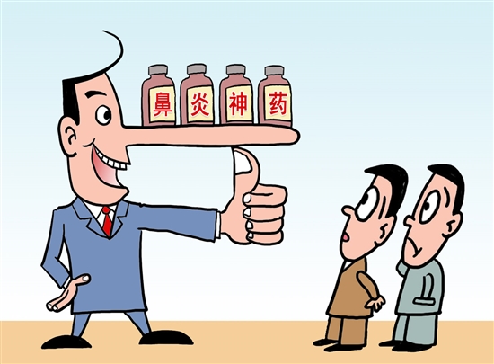 “400年传承古方,高科技组合,不打针、不吃药可以治好鼻炎……”看到这样噱头十足的宣传广告,受到鼻炎困扰的人可能会很心动,殊不知这治疗鼻炎的“神药”实则只是消毒产品。 近日,安徽省宣城市人民检察院诉鼻舒堂总公司以及三家门店侵害消费者权益纠纷民事公益诉讼四起案件一审宣判。判定四被告分别在国家级及市级媒体赔礼道歉,并分别支付6000元至20000元不等的赔偿金及承担调查取证费用。 (1月20日《法制日报》) 点评:群众花钱买的“鼻炎神药”却是消毒产品。虚假广告、消费陷阱连环相扣,迷惑得了患者的眼睛,终究迷惑不了法律。——小利