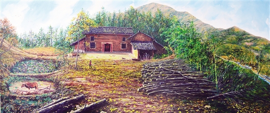 故乡是画家灵感的源泉和养分,李小亮出生于宾川县鸡足山镇上沧村,是一个典型的白族村庄。白族民居从内到外都配有字画,多以山水、花鸟、古诗词为主,好比一个巨大的乡村民族博物馆。李小亮小时候对线条、造型、色彩异常敏感,常常徘徊于村头巷尾,临摹前人字画。故乡的山川人物至今仍对他有着极其深刻的影响,他没有背弃滋养心灵的故乡,并没有回避艺术“高速现代化”进程下的乡土题材。他作品中隐藏着一股淡淡的哀愁与怀乡的感伤,画面淳朴,充满着红土高原鲜活的生活气息、丰沛的生命情调,让人们感受到了久违的田园牧歌式的“诗意栖居”。