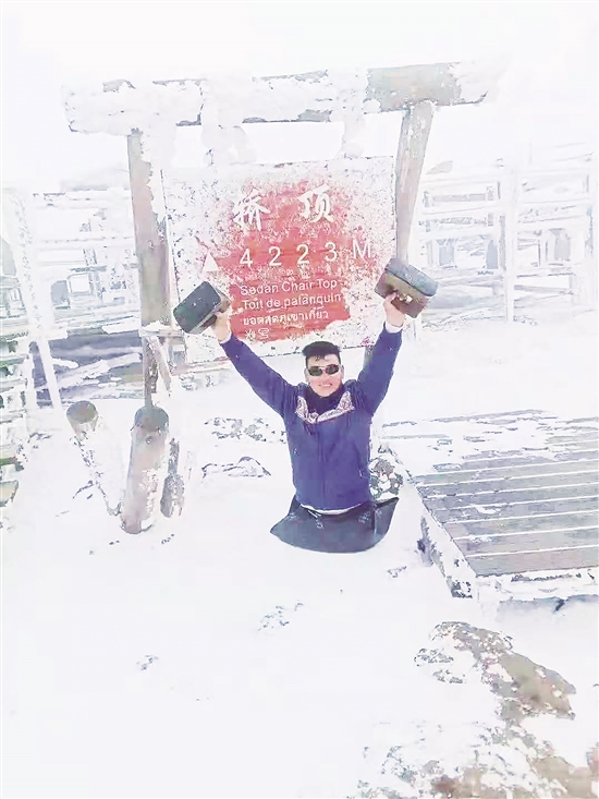 卢洪海热爱户外运动,参加过马拉松。这位来自文山州广南县的小伙子,在两岁半那年因为车祸失去了双腿。2018年,他凭借两个小木凳、一个汽车内胎做的皮垫子登上了轿子雪山顶。 为了亲眼看到轿子雪山上面的风景,2018年12月9日,卢洪海决定挑战自己,攀着绳索向雪山山顶爬行。雪山栈道曲折又有积雪,特别是“一线天”处,有足足600级台阶,可是他没有放弃。历经3个小时,他终于成功登顶。 卢洪海的事迹鼓舞了很多人。关于他的视频被上传至快手App后,网友们亲切称他为“励志哥”。卢洪海不屈不挠、乐观向上的精神,就像峭壁上盛开的美丽花朵,他用自己的拼搏告诉所有人:纵然疾风起,人生不言弃。