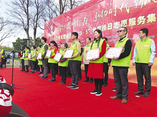 昨天,是全国第56个学雷锋纪念日。全省各地,众多志愿者和团队发起了学雷锋活动。在昆明,省图书馆组织志愿者为盲人口述电影,“雷锋车队”60名驾驶员走上街头助交警疏导交通,“昆明之美”爱心组织为市民免费理发……在曲靖,千人“快闪”传唱雷锋主题歌;在大理,各中小学组织“国旗下的讲话”活动,诵读《雷锋日记》经典文段…… 主会场 40个 昆明表彰一批学雷锋先进典型 昨日,由中共云南省委宣传部、省文明办、省民政厅、省直机关工委、省国资委、团省委、省妇联、昆明市文明委、昆明市创建全国文明城市志愿服务指挥部主办的“践行文明行为·弘扬时代新风”2019年云南省暨昆明市“3·5”学雷锋日志愿服务集中活动在官渡古镇南门广场举行。 昆明市今年的学雷锋活动采取1个主会场和各县(市、区)设分会场的“1+N”形式开展。参加主会场活动的有各级志愿服务队以及荣获昆明市最美志愿者、最佳志愿服务项目、最佳志愿服务组织、最美志愿服务社区等荣誉称号的个人和代表。现场,各级志愿服务队开展了旧衣换绿植、医疗咨询等服务活动。此外,活动还为昆明市2018年40个学雷锋先进典型颁发了奖牌及证书。 据悉,近年来,昆明市委、市政府高度重视志愿服务工作,大力推进志愿服务制度化建设。目前,全市有志愿服务组织团体3800多个、春城志愿者98万人和志愿服务工作站点2500多个。 分镜头 五华区 家政志愿者免费上门服务 当天下午,五华区红云社区以“学雷锋阳光服务、情暖居民”为主题,在远洋风景小区组织专业理发师、家政服务员、摄影师等开展了“助残、敬老、帮困”志愿服务系列活动。家政志愿者上门为低保人员免费打扫卫生,医生志愿者为残疾人、老年人等义诊,摄影志愿者为市民免费拍照。 西山区 开展社区邻里守望等活动 当天上午,西山区2019年“3·5学雷锋志愿服务”集中示范活动在碧鸡广场举行。当天,辖区20个单位的志愿服务队开展创建全国文明城市、生态环境建设、社区邻里守望、弘扬中华传统文化等志愿服务活动。据了解,目前西山区系统注册的志愿服务组织达486个,注册志愿者16万余人,注册志愿者人数占常住人口的比例达到20.5%,每年全区开展各种志愿服务活动1万多次。 盘龙区 志愿者为市民义诊理发 当天,“志愿新时代·生命更出彩”盘龙区2019年“3·5”学雷锋日集中志愿服务活动在桃源广场举行,500余名志愿者为群众提供了爱心义诊、法律咨询、理发、照相等服务。 晋宁区 废品换绿植手机免费贴膜 当天,晋宁区在学雷锋广场开展以“践行文明行为·弘扬时代新风”为主题的集中志愿服务活动,来自全区各行各业各领域的140余名志愿者,组织了义诊、免费手机贴膜、生活废旧品换取绿色植物等活动。 心声音 新时代 雷锋精神是什么? 雷锋精神,是在自己力所能及范围内,随时随地帮助有需要的人。——王国艳(出租车驾驶员) 在我看来,雷锋精神就是“感恩与报答”。——蒋素华(昆明市2018年“最美志愿者”之一) 在平凡工作岗位上默默奉献,也是雷锋精神的一种表现。——吴喜洲(大理市志愿服务者) 本报记者 秦蒙琳 张勇 期俊军 孙琴霞 宋金艳 罗宗伟 杨峥 蒋琼波 实习生 杨惠芬 江芷汀 通讯员 谢余 吕水仙 摄影报道