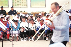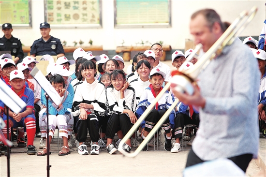 昨日,一场别开生面的西洋音乐会在新平县新化乡老五斗小学奏响。 本报记者 陈飞 摄