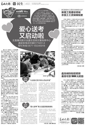 火红六月,奔赴梦想;小小付出,为爱让行。昨日上午,以“为爱让行”为主题的昆明第十六届“爱心送考”在云南民族村广场启动。经过16年的发展,“爱心送考”已发展成云南省持续时间最长、辐射面最广、影响力最大的公益活动,覆盖城市从最初的昆明市扩大至全省16个州市,参加此活动的志愿者累计超过10万人,30万考生因此受益。 据介绍,云南省2019年普通高等学校招生全国统一考试将于6月7日至8日举行,报名人数为326181人。为最大限度保障广大考生的赶考路平安顺畅,本届“爱心送考”的主直播间将首次设置在昆明交警指挥中心。作为“2019爱心送考空中调度指挥平台”,该直播间也将承担起媒体、交警、出租车、公交车、社会爱心人士等多方联动、快速反应、应急处突的护考保通服务功能,让广大考生赶考路上可能遇到的各类突发事件能够得到快速、有效、妥善处置。在赶考、送考路上的考生、家长及爱心司机如遇突发情况需要帮助,可向最近路口的执勤交警求助,或拨打FM91.8帮忙热线0871-65346918进行求助,“2019爱心送考空中调度指挥平台”将第一时间进行调度处置,为考生顺利赶赴相应考场提供及时帮助。 启动仪式上,在爱心司机代表的带领下,来自昆明市出租汽车行业内的党员示范车、雷锋出租车队、中北红旗车队、星级标兵车队等100名出租汽车驾驶员代表进行宣誓,他们将安全及时地接送考生,保证圆满完成送考任务。目前,“爱心送考”已经形成一套完整、成熟、高效的考生服务联动机制,其功能已经从讲述真情故事发展成云南高考社会服务体系的重要组成,同时也是云南省一张靓丽的公益名片。 据悉,本次“爱心送考”共计划发送车标3000套,车标发放时间为5月31日至6月6日9:00-16:00,发放地点为普瑞眼科医院(昆明市五华区龙泉路29号)。本届“爱心送考”活动原则上仅招募出租汽车和公交车为“爱心送考”车辆,并建议考生和家长选择公共交通工具赶考。 春城晚报-开屏新闻和FM91.8在此特别提示,今年高考恰逢端午假期,请广大市民提前规划出行时间、线路,尽量避开赶考高峰时段。 本次活动由云南广播电视台FM91.8云南交通之声、FM88.7云南私家车电台、都市条形码、春城晚报-开屏新闻共同发起,昆明市交通运输局、昆明市公安局交通警察支队、昆明市出租汽车管理局、昆明出租汽车协会、昆明市32家出租汽车公司、昆明公交集团联合主办,“中国劲酒”全程支持。 送考故事 “以送自己孩子的心态去护送” “赠人玫瑰,手留余香。”47岁的昆明出租车司机马骏和妻子贺云华共同见证了“爱心送考”的成长历程,两人开出租车近20年,“爱心送考”一次都没落下。马骏回忆称,每年送完考生后,有一些家长会给他们送来“爱心早餐”或“爱心苹果”,自己也十分感动。 “家长把孩子送到我们手上,我们会以送自己孩子的心态去护送。”据马骏介绍,高考当日,他一般是早上7点30分开始出门接送。考生上车后,他的第一件事就是提醒他们检查考试用具和证件是否带齐,送达考场以后,自己还要再检查一遍车内,以免他们遗忘证件等。如果有“一对一”结对的考生,那么,考试前就会带着其去熟悉路线和考场,而自己要计算行驶时间、距离以及备选路线,遇突发情况时,不能让考生坐在车上着急。 从第一届“爱心送考”就开始,一直参与了16年“爱心送考”的的哥彭师傅告诉记者,“从一次次‘爱心送考’中,我们目睹了道德风尚的手手相传,见证了人间心心相印,也感受到了众人拾柴火焰高的力量。一段路、一段情,关心、爱心、热心真情交融,让满满正能量得以延续。” 企业情怀 “爱心送考”意义远超其服务属性 昆明出租汽车协会会长黄艳军介绍,“今年有3000多辆出租车参与到‘爱心送考’活动中,意义已经远远超过了它的服务属性,更在于它的社会属性,释放出了正能量。” 支持本次活动的爱心企业劲牌有限公司,作为行业的领军企业,一直履行社会责任,积极投入在各类公益活动当中。今年6月,劲酒不忘数十年来一直支持和关注公司发展的社会各界朋友,怀揣感恩之心回报社会,也为第十六届“爱心送考”贡献了自己的努力,体现了劲牌企业有担当的态度。 据乾盛出租车公司总经理王东明介绍,从第一届“爱心送考”至今,他们一直参与这项暖心公益活动,为广大考生献一份爱心、给一份鼓励。今年乾盛出租车公司继续参与,预祝同学们考出好成绩,不辜负老师家长和社会各界的厚爱。 本报记者 刘嘉 摄影报道