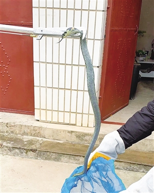 9月1日16时45分,安宁市自然资源公安局接到110转警称:太平街道太平万辉3期某住户家中有一条蛇,请前往处理。由于这条蛇长相奇特,还惊吓到了发现它的市民。 接警后,民警迅速赶到太平街道太平万辉3期,在报警市民的指引下,看到一条两米多长的蛇盘踞在花园的围栏上。经民警初步确认,这条蛇是虎斑游蛇。随后,民警及时用捕蛇工具将其捕获,并送往昆明市濒危动植物收容拯救中心。 民警提示,虎斑游蛇虽然性格温顺,但属于有毒性的蛇类。虎斑游蛇颈部有明显的颈槽,两侧有一对粗大的黑色斑块,背面为翠绿色或草绿色,有方形黑斑,颈部及其后一段距离的黑斑之间为鲜红色,腹面为淡黄绿色。现在虽然已经入秋,但蛇类活动仍然频繁,如遇到蛇类,及时报警,由民警前往处理,以避免受伤。本报记者 左学佳 文 安宁市自然资源公安局 供图