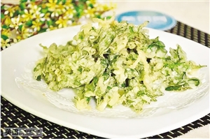 制作油炸花椒叶最需要注意的是花椒叶和面粉的比例,面粉过多或太少都会影响花椒叶的口感。