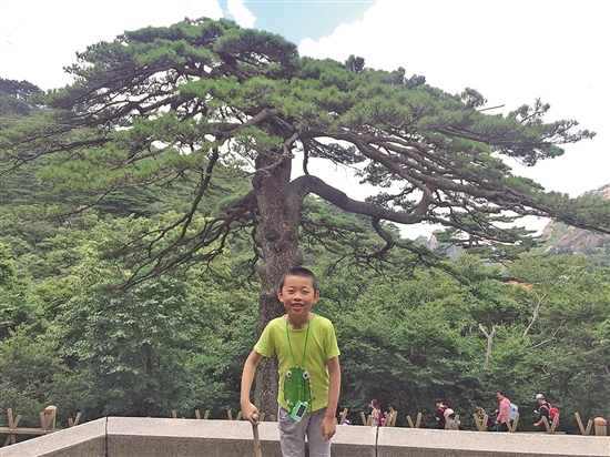 陈思烨 云师大附小文林校区三(5)班 自从二年级上了《黄山奇石》一课后,我就对黄山充满了无限遐想。盼望了好久,到了暑假,爸爸终于有时间带着我来到了仰慕已久的黄山游览,我别提有多高兴了。 大巴在蜿蜒曲折的盘山公路上行驶着,连绵不断的山脉上长着许多苍翠挺拔的大树,像给大山披上了一件绿衣裳。山上怪石嶙峋,薄薄的云雾缭绕在连绵不断的山峰间,仿佛把我们带入了童话中的仙境,令人心旷神怡。下了大巴,我们接着坐上了缆车。缆车越升越高,本来在地上看起来参天的树木现在已经在我们脚下了,仿佛伸伸手就可以触摸到洁白的云朵,居高临下的感觉简直太棒了! 很快,缆车把我们送到了半山腰,令人憧憬的黄山之行终于正式开始了。一路走下来,只见一座座高山,有的青苍,有的灰褐,有的暗紫,有的寸草不生,有的周身披绿,有的独树矗立。一棵棵奇松,姿态各异,有迎客松、黑虎松、连理松……这些坚强不屈的松树,很多都长在石缝里,在断崖绝壁的地方伸展着它们的枝翼,为黄山抹上了浓浓的生命色彩。一块块怪石,点缀在雄伟挺拔的群山之中,有的像猴子观海,有的像鳌鱼驮金龟,有的像倒着的毛笔,形态千奇百怪,令人叫绝。一片片云海,就像望不到边的海洋,把一座座高山峻岭淹没掉了,只露出山尖,仿佛是大海里的小岛。大风一吹,“海”就流向旁边,一个一个奇妙的美丽景象又展现在眼前。 黄山不仅是奇特的、美丽的,它还很险峻。“百步云梯”那段路几乎全是直上直下,隔老远看着就让人心惊肉跳。上山的时候,只有弯着腰,眼睛紧紧地盯住台阶,手牢牢地扶着石壁,用力才能爬上去。我才爬了一会儿,就累得精疲力竭,但我咬牙坚持着,终于还是爬完了这最为困难的一段行程。而这时,所有爬完的人,只要回头一望,不约而同地发出一声:“好险啊!”这样的黄山之行,既使我见识了祖国的大好河山,也锻炼了我的意志,使我懂得了只有坚持不懈地攀登,才能领略到高处的风光。 这就是美丽而险峻的黄山,难怪古人会留下“五岳归来不看山,黄山归来不看岳”的佳句。回到家乡,那些令我回味无穷的美丽景色,还在我脑海里回荡。 黄山,让我念念不忘!