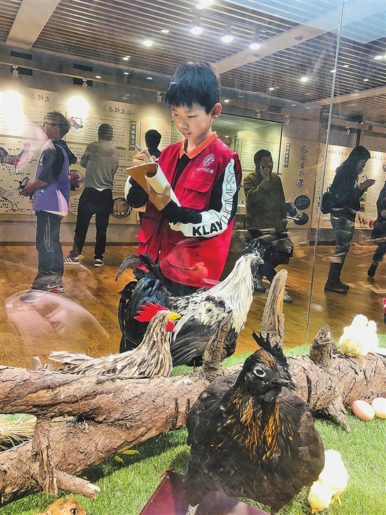 “闻鸡起舞”“金鸡独立”“雄鸡一唱天下白”……关于鸡的成语、诗歌,我们知道的不少,可鸡博物馆还真是第一次听说。10月13日,春城晚报小记者来到了云南农业大学鸡博物馆,开展了一次别开生面的参观学习和采访。 云南农大鸡博物馆是云南乃至我国南方第一家以鸡为主题的文化博物馆,里面陈列了很多用真鸡做的模型,都是农大的老师带领学生们亲自做的。讲解的哥哥、姐姐们也是农大的学生,他们耐心细致地给我们介绍了家鸡的起源与驯化、中国家鸡遗传资源分布、鸡的价值、鸡的生物学等科普知识,还介绍了鸡的文化与习俗、云南名鸡美食等等,真是涨知识了,不来不知道,原来鸡还有那么多讲究呐。 最令我印象深刻的,还有鸡的起源,鸡的DNA有80%和恐龙是一致的,所以有的科学家认为鸡是从恐龙进化来的,想想当年的地球霸主在生物进化的进程中逐渐演变成了今天主要用来产蛋、食肉的家鸡,我觉得恐龙真是越混越没名气了! 不过随着对鸡的了解,我又开始转变观念了。家鸡与人类关系密切,它不仅提供营养价值丰富的鸡肉和鸡蛋,还可用作宠物、观赏、报时、娱乐,鸡的文化与习俗也对人们的生活产生了极大的影响。 鸡被称为“德禽”,集“文、武、勇、仁、信”为一身,从古至今,鸡一直为人们所敬仰、所推崇。所谓“文”也,是因为雄鸡头上高耸着火红鲜艳的鸡冠,而“冠”与“官”谐音,“文”的意思是礼。古人以冠冕堂皇为礼,寓升迁腾达之意。 所谓“仁”也,是指母鸡对自己的子女关怀备至,一旦发现吃的,总是“咕咕咕”地召唤鸡崽吃食;遇到外界惊扰,也是用翅膀护住鸡崽不被侵害,其仁爱之心可见一斑。 所谓“武”也,是指鸡拥有强劲的利爪,可以保护自身、威慑来犯之敌。 所谓“勇”也,是指鸡作为善斗的勇士勇猛、顽强。 所谓“信”也,是指雄鸡守信报晓,不管酷暑寒冬、阴晴雨雪,从未有丝毫的懈怠,具备守信、准时的美德。 我们还学习了跟鸡有关的文字、鸡相、鸡联,又看了云南各地用鸡做的美食,我的口水一下就流下来了。 最后,我们还采访了农大的博士,小记者们纷纷问了很多有趣的问题,比如先有鸡还是先有蛋啊?土鸡蛋和洋鸡蛋哪个更有营养?小鸡孵化为什么是先长头?……采访结束了,但大家仍然意犹未尽。 通过这次参观学习,我对鸡有了更深入地了解,鸡真的是个宝啊!