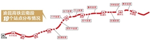 昨日上午,我国“八纵八横”高速铁路网、京昆快速铁路通道的重要组成部分——渝昆高铁云南段正式开工建设,标志着云南铁路建设步入快车道。建成后,昆明至重庆和成都将由目前5至6小时压缩至2小时。 省委书记、省人大常委会主任陈豪出席渝昆高铁云南段开工仪式并宣布建设动员令;省委副书记、省长阮成发,中国国家铁路集团有限公司副总经理王同军讲话;省政协主席李江出席。 渝昆高铁是国家中长期和“十三五”铁路网规划的重要项目,自重庆西站引出,经重庆、四川、贵州和云南三省一市,线路全长699公里,设计时速350公里,总投资1416.2亿元,计划建设工期6年。其中,云南段388.6公里,占全线56%,途经昭通市、曲靖市,终到昆明南站,共设10个车站。今后,云南将实现经宜宾与成都、西安,与重庆、郑州、北京的快速互联互通。 阮成发指出,渝昆高铁是云南境内第一条时速350公里的高速铁路,在云南铁路发展史上具有里程碑意义,必将为云南发展打开新空间、带来新机遇。渝昆高铁是一条发展之路,建成后将推动滇中城市群和成渝城市群紧密连接在一起,构建形成“2小时高铁经济圈”,构筑起沿线地区经济生活“新版图”,必将大幅提升昆明等中心城市辐射带动作用,为云南乃至长江经济带区域融通联动提供强有力支撑。渝昆高铁是一条开放之路,在昆明与沪昆、云桂高铁和成昆铁路复线相连,未来可以延伸到南亚东南亚,形成联系中国和东盟的高铁通道,必将有力促进云南主动服务和融入“一带一路”建设,助推云南加快建设面向南亚东南亚辐射中心。渝昆高铁是一条富民之路,作为国家“百项交通扶贫工程”重点项目,云南段10个车站有7座设在乌蒙山集中连片特困地区,建成后将极大改善沿线交通条件,带动资源开发和产业发展,必将有力促进沿线地区脱贫攻坚和经济社会高质量跨越式发展。 阮成发强调,有关州市和部门要全面加强统筹协调和要素保障,全力支持工程建设,及时解决项目推进过程中的关键问题,确保项目有序推进。要以渝昆高铁云南段开工建设为契机,推动一批项目前期和在建工程加快进度,积极谋划更多事关全局发展的铁路项目,掀起铁路建设新高潮。各工程建设单位和广大建设者要牢固树立质量第一、安全至上理念,高起点高标准高质量推进项目建设,严格工程建设全流程、各环节管理,将渝昆高铁云南段打造成为经得起历史检验的精品工程。希望中国国家铁路集团有限公司一如既往关心支持云南铁路事业,加大铁路规划建设、提速改造等支持力度,共同推动云南铁路建设取得新的突破。 刘慧晏、和段琪、张荣明出席,王显刚主持。开工仪式设立昆明、昭通两个会场,省级有关部门,渝昆高铁云南段沿线三市主要负责同志,各参建单位代表,少数民族群众代表参加开工仪式。 本报记者 陈晓波 胡晓蓉 朱婉琪