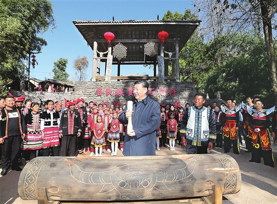 冬日午后的阳光,温暖而祥和,洒进整洁的农家院落。一张方桌,几把矮凳。习近平总书记同主人李发顺一家六口围坐在一起,共话脱贫攻坚,畅想幸福生活。 “脱贫了,还有什么需要提高改善的吗?”“希望老人晚年过得再好一点,两个小娃将来找份好工作,就心满意足了。”小院里,笑声朗朗,暖意融融…… “两不愁这个问题解决了” 春节前夕,习近平总书记专程赴云南看望慰问基层干部群众。1月19日下午,他首先来到腾冲市清水乡三家村中寨司莫拉佤族村。 脱贫后的村民李发顺一家,住进了“大五架”房,一正两厢一照壁,上下两层,干净结实。 “这房子格局不错,很聚气。”走进李发顺家,习近平总书记先看住房情况,“房子什么时候盖的?花了多少钱?” “2014年在老房子基础上拆除重建的,政府补了12000元。”李发顺告诉总书记。 堂屋、卧室、厨房、卫生间……习近平一间一间细细看过去。走进卧室,习近平摸摸床上的褥子,关切地问:“这个季节夜里睡觉凉不凉?”在厨房里,习近平拧开水龙头,试试自来水。打开冰箱门,看到有菜有肉,掀开锅盖,一阵饭香扑鼻而来,习近平点点头:“吃饱、穿暖,两不愁这个问题解决了。” 后院猪圈里,养了大大小小20多头猪。习近平走到猪圈跟前,边看边问:“猪价还好吧?这一头种猪一年能赚多少钱?” “去年猪价好,卖了8头肥猪,一共卖了近3万块钱。养一头母猪,政府还补助600块。这一头种猪一年也能赚2000多块。”李发顺笑着说。 “你们的小家和国家的命运紧密联系在一起” 回到小院,围坐在一起,李发顺有一肚子的话想同总书记讲。10年前一场突如其来的车祸,使李发顺严重受伤、几近瘫痪。这个家庭失去了主要劳动力,再加上一双儿女的上学花费,让他们顿时陷入困境。国家政策帮扶,全家共同奋斗,2017年底李发顺家实现了脱贫摘帽,去年家庭收入超过了4万元。 “你们现在主要做些什么?”习近平详细询问家庭收入来源。“我在家养养猪,种点玉米、茶叶,还回收出售废品,妻子这几年在广东东莞电子厂打工,收入也还行。”李发顺说。 “老人家身体都挺好吧?看病有没有保障?”总书记接着问。“我父亲78岁,母亲71岁了,身体都还好。现在国家政策好,老人看病报销比例很高,给我们减轻了很大负担。”这两年,李发顺父母看病先后花了1.5万多元,医保报销了绝大部分,自付不到1500元。 “两个孩子都在上学?学费怎么样?有没有享受助学金?”总书记的目光转向李发顺的一双儿女。 正在北方民族大学上大三的大女儿李连欢,前几天刚从宁夏银川赶回家过年,她告诉总书记,每年有6000元的免息贷款,还有国家助学金,可以解决学费和住宿费。 “离毕业还有一年,准备怎么发展?到哪里工作?”总书记亲切地问。 “现在正准备考研,读完研究生后,回来考公务员。” “好!真是有想法,这完全是可以做到的。有志者事竟成!” 李连欢的弟弟李连斌坐在总书记右手边,虽然还在读高三,但同姐姐一样也有了自己的人生计划:“我准备考四川的武警警官学院。” “好,有志气!以后当武警,当兵参军,体格得练好。我也祝你成功!” 习近平总书记语重心长,饱含鼓励:“你们的小家和国家的命运紧密联系在一起。全面建成小康社会进而全面建设社会主义现代化强国,你们这个年纪恰逢其时,将来要做党和国家事业的接班人、民族团结进步事业的接班人。” 姐弟俩点点头,眼神中充满了希望。 李发顺邀请总书记一起制作佤族新年传统食物大米粑粑。接过毛巾擦了擦手,习近平总书记同李发顺夫妻俩一起操作起来。右手拿起一团大米粑粑,在模子上用力摁下,左手再加把劲,总书记笑着说:“摁了个福字,再来一个喜字,有福有喜。”大家鼓起掌来。 “祝大家新春愉快、阖家幸福” 村情展室里,一幅幅新老照片鲜明对比,佤寨交通、住房、文化教育等方方面面的翻天巨变,让总书记频频称赞。 “你们这里已经实现脱贫并正向新的发展目标努力迈进,这个过程也和我们国家一样,全面建成小康社会之后要全面推进乡村振兴,进一步解决城乡发展不平衡、空壳村等问题,发展乡村产业,振兴乡村经济,让更多乡亲就地就近就业,不断增加收入、改善民生。祝幸福的司莫拉村更加幸福!”习近平对大家说。 村寨广场上,身着民族服饰的佤族男女老少,敲起象脚鼓,一起“加林赛”(佤语:意为大家一起排队跳舞),用热情的甩发舞和欢快的竹竿舞,欢迎最尊贵的客人。 按当地风俗,总书记敲响佤族祝福木鼓——“一声鼓响,风调雨顺;二声鼓响,国泰民安;三声鼓响,四海升平!”随着浑厚的鼓声和长者的祝语,广场上掌声、欢呼声汇成一片。 “村村寨寨哎,打起鼓、敲起锣,阿佤唱新歌……”送别的时刻到了,村民们纷纷围拢过来,唱起《阿佤人民唱新歌》,簇拥着总书记走到寨口,依依不舍。 “祝大家新春愉快、阖家幸福!”总书记同乡亲们挥手道别。 “共产党光辉照边疆,山笑水笑人欢乐。社会主义好哎,架起幸福桥。哎……道路越走越宽阔,越宽阔……”欢快的歌声,在村寨里久久回响。据新华社