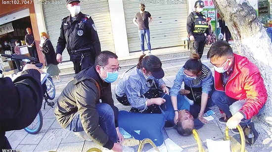 3月13日,昆明市金碧路上一位老人突然晕倒,脸朝下,疑似口鼻出血,情况危急……幸好离云南省第一人民医院较近,多位医护人员见状后处理得当,让老人及时脱离了生命危险。 云南省第一人民医院门诊导医刘艳告诉记者,当天她刚出医院就看见天桥下有人聚集,上前后看到有人倒在地上,脸朝下。 “当时什么也没想,只是觉得要先判断患者的生命体征,好为下一步需要采取的救援措施作准备。”略微一思索,刘艳连忙蹲下来查看,将老人慢慢转过来。 刘艳说,老人五十来岁的样子,人已经晕过去了,没有意识,有呼吸,有脉搏,但呼吸困难。她判断,老人的伤情并不是因为摔倒,可能有其他症状,但由于无法确定,她先将老人的头偏向一侧,以防老人无意识咬伤。 18时24分,两名路过的医生加入了救援,一位是铁路医院的,一位是省一院的。他们向周边开食馆的店铺借来了筷子和纸巾,试图放在老人口中以防老人在无意识状态中咬伤自己,又借来一件衣服垫在老人头下。随后省一院门诊导医李佳琴也来到了现场协助救援。 18时30分左右,救护车赶到,在大家的合力相助下,老人被送入医院。 省一院急诊内科医生张立告诉记者,患者到门诊时是昏迷状态,呼吸道梗阻,心跳和血压在下降,进医院时还做了体检,发现右侧颈部有一个巨大的肿块。考虑可能有肿块压迫,患者倒地后鼻腔有明显出血,支管插管的难度较高,医护人员就赶快做心脏复苏、心脏按压……经过抢救后,患者的呼吸道开放了,血压逐渐正常。“到21时许,他已经慢慢恢复了一些,插着气管不能说话,但他可以点头,比手势。” 张立告诉记者,再晚个几分钟,患者可能就会出现危险,还好当时患者就在医院旁边,医护的处理很及时,还提前告诉医生做好准备工作。 目前,患者在省一院接受进一步治疗。本报记者 马雯 文 视频截图