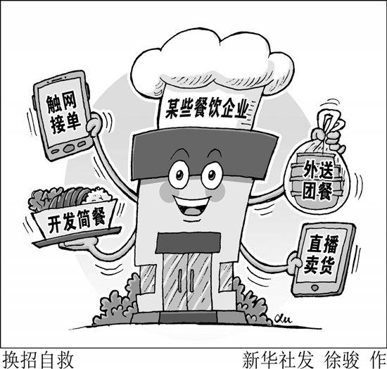 一场疫情让餐饮业陷入“寒冬”,客流骤减、收入大降。随着疫情防控形势好转,堂食陆续开放,但恢复元气仍需时日。触网接单、开发简餐、外送团餐、直播卖货……餐饮业变换招式展开自救,逐渐走上复苏之路。