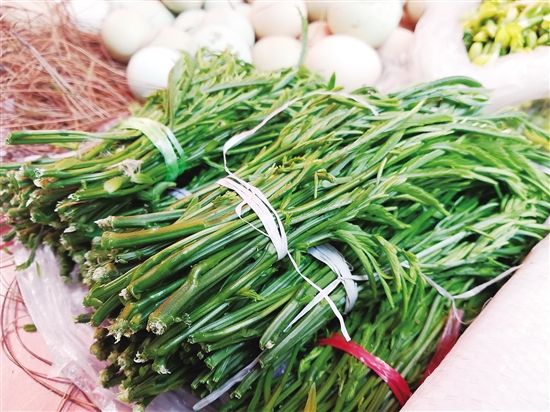 保山 山蕨菜陆续大量上市 阳春三月,滇西漫山满沟的野菜相继吐露出了新芽。3月16日,记者发现保山城区各大菜市场上野菜已陆续上市,先期领衔的野菜主要有山蕨菜和苦圈圈等,其中以销售山蕨菜的菜贩为多,一个市场里,卖苦圈圈的有1到2家,而卖山蕨菜的菜贩多达五六家。 在隆阳区明强街汇金湾农贸市场,菜贩王大姐的摊位上摆满了新鲜的山蕨菜。据王大姐介绍,最近几天山蕨菜陆续大量上市,零售价为10元/公斤左右,目前她一天可卖出15公斤左右。苦圈圈市场价在4元/公斤左右,卖苦圈圈的李大姐一天才卖出不到3公斤,主要还是市民购买。 在杏花农贸市场,记者看到的情况与汇金湾相似,也有几户菜贩在销售苦圈圈和山蕨菜。据卖菜的刘师傅介绍,目前上市的野菜就只有这两种,而保山人最喜欢吃的刺包包、白花还要等一段时间才会上市。 春风十里,又是云南人大饱口福的时候了,山茅野菜上市啦! 各色春花盛开的季节,连同那些衬托花朵的绿叶、嫩芽,在人们对美食无限的想象力与创造力面前,悉数上了餐桌。热气腾腾的生活里,晒花、晒山茅野菜,品尝春天的芬芳色彩,勾起那一抹乡愁。 吃花蕊的攀枝花、根叶均能食用的蒲公英,还有黄果芽……这个春天,即使不能呼朋唤友去踏青,但3月的馈赠足以让云南人的厨房充满了春天的味道。 价格 山蕨菜10元/公斤左右 苦圈圈4元/公斤左右 曲靖 大部分野菜价格略涨 近日,记者走访了曲靖几大蔬菜市场,发现野菜已经大量上市,市民踊跃购买纷纷尝鲜。在何家屯农贸市场,许多菜摊上已经摆满了各种野菜,诸如香椿、蕨菜、野生折耳根、棠梨花、臭菜、金雀花、苦刺花、芦笋、小野蒜、茉莉花、灰灰菜等等。现场,一位菜摊老板表示,大部分野菜价格略有上涨,但蕨菜、苦刺花、棠梨花、灰灰菜的价格较往年波动不大。买菜的张女士表示,最近他们家里已尝鲜凉拌松树尖、香椿炒鸡蛋、香椿炒火腿等。 价格 芦笋3元/两 棠梨花8元/公斤 香椿15-20元/公斤 野生折耳根20元/公斤 臭菜60元/公斤 金雀花、茉莉花50元/公斤 灰灰菜5元/公斤 玉溪 金雀花最贵120元/公斤 在玉溪的农贸市场摊位最显眼的位置,摆放着香椿、金雀花、臭菜、棠梨花等各种野菜。在紫艺农贸市场,香椿、臭菜被捆成小捆售卖。香椿一捆有大人手腕粗,5元两捆、10元3捆不等。棠梨花较其他野菜来说,做法麻烦,但价格实惠,售价在14元/公斤。目前,最贵的野菜当属金雀花,120元/公斤,这个价格让不少市民望而止步。一位摊贩告诉记者,现在已经到了野菜大量上市的时候,这段时间,野菜的价格最便宜,口感最好。 价格 棠梨花14元/公斤 金雀花120元/公斤 红河 小伙专卖野菜 近日,保山小伙左春华在蒙自市桥头综合农贸市场的小摊点生意非常不错。 半个月来,左春华的摊点上有10多种野菜,包括常见的香椿,蒲公英、枸杞叶,不过,很多却是其他地方很少见到的,像金雀花、折耳根、刺脑包、鸡屎臭药花、甜菜叶、酸汤杆等。在市场里, 记者还看到了春天里最常见的面蒿,这种黄色的野花,在这段时间的田野里开得最多。 大理 白杜鹃花豆米汤上场 “枸杞尖、树头菜、香椿、马桑花、蕨菜、青刺尖。这几天客人不多,我们每天只进五六个品种的野菜,数量也不多。”大理琦龙风味莊餐厅经理乔燕妮说,往年这个时候,每天都要进10多个品种的野菜。这几天,菜市场上的野菜品种很多,金雀花、杜鹃花、棠梨花、灰挑菜等等。每年春天,苍山杜鹃花开的时候,大理最著名的一道野菜,就是白杜鹃花。人们把杜鹃花从山上采下来,除去花蕊,用清水煮沸、漂洗,然后浸泡在冷水中。吃的时候,从冷水里捞起来,与青豆米同煮,一盆翠白相间的白杜鹃豆米汤便跃然眼前。 丽江 车前草蒲公英最多 近日,丽江市各区县的菜市场内,车前草、蒲公英、锯锯菜、金雀花、攀枝花、槐花、斑鸠菜、黄果芽等野菜,又在这一个春天来到了集市,供人挑选。记者发现,各大农贸市场出现频率最多的是车前草、蒲公英、锯锯菜、金雀花,除了金雀花稍微贵点,其余20元/公斤就能买。“现在的人喜欢吃这些草草,说吃了健康,每天不到中午就能卖完,锯锯菜卖得最快。”丽江吉祥市场杨大妈的摊位,因果蔬都采于自家园子,颇受欢迎,野菜上市的季节,杨大妈总会在显眼的位置上摆好新鲜野菜。“野菜不愁卖,价格也好。” 尝鲜提示 如何从野味变成美味 “大多数野菜,在烹饪前进行焯水,焯水,其实是为了安全。在吃野菜、尝百花的这事上,炒、煮、煎、拌等烹饪方式都可以用上。”对野菜情有独钟的丽江市民何先生向记者介绍说。 攀枝花做法 攀枝花花瓣可以做药材,具有清热利湿、解毒止血的功效,花蕊可以做菜。攀枝花性凉味甘、淡,是初春前后不可多得的美食。挑选用来入厨的攀枝花,含苞待放的角苞最佳。攀枝花分离:剥去裹着花蕊的外层花瓣,留下花蕊,将花蕊头顶的花粉去掉,拔掉蕊芯。烹饪时,一般将处理好的花蕊过水焯一会,拿出沥水备用。锅内放少许油,将切好的腊肉放入翻炒,倒入蒜苗,倒入花蕊,同时将水豆豉放进锅中,翻炒,一道美味的应景腊肉攀枝花就出锅了。除了炒食,凉拌攀枝花也是不错的佳肴。 苦刺花做法 择菜洗净,放入沸水中浸泡后捞出,再放入清水中浸泡1~2天,花苞内的黄色花蕊就会脱离出来,苦味也就撇去,除去苦涩味后,取出挤干水分。炒肉做法:腊肉用温水洗净,剁碎。炒锅上火,注入
