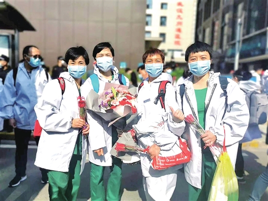 经过一个多月的奋战,3月18日,官渡区人民医院林雄英、赵永芳、王亚和伏丽萍4名医务人员随云南省支援湖北医疗队队员一起返回昆明,吃到了家乡的味道。 武汉市汉阳体校方舱医院是4名医务人员这一个月来工作的地方,每天的忙碌从穿上三级防护服开始。紧盯每一位进舱工作人员,为他们进行全身消杀,看他们是否按院感流程一步步地完成每一步操作,是她们每天都要重复进行的工作;确保每一名进舱医护人员、安保人员、保洁人员、维修人员零感染是她们最重要的使命。 在方舱医院的一个月,4名医务人员和患者们彼此陪伴和守护。她们用手语为患者表演《感恩的心》,在送给患者的鲜花饼包装袋上写下“鲜花饼和热干面永远在一起”,为每一名患者加油打气,送走了越来越多痊愈的患者。终于在3月8日,武汉市汉阳体校方舱医院确诊病例、疑似病例“清零”,病患全部治愈出院,医院正式休舱。 3月18日一大早,最后打扫一次驻地房间,留下一封感谢信,穿上统一发放的衣服,4名医务人员便踏上了归途。从驻地到机场,一路高歌、一路挥手,隔着玻璃、隔着口罩,她们感受到了武汉人民的热情与不舍。在天河机场,领取了特制的登机牌和伴手礼之后,4名英雄登上了回家的飞机。 当天下午3点半,飞机抵达长水机场。除了感动于“最高礼遇”,让4名医务人员更开心的是,终于吃到了家乡的味道。“我们吃了小锅米线、炸洋芋、排骨藕汤,太怀念这个味道了。” 本报记者 罗宗伟 通讯员 甘露 郭武辉 文 林雄英 供图