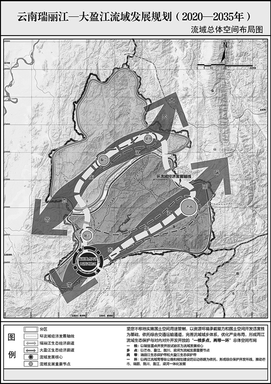 近日,经云南省人民政府同意,省发展改革委印发了《云南瑞丽江-大盈江流域发展规划(2020-2035年)》,未来15年,我省两江流域将如何规划发展?4月24日,云南省人民政府新闻办公室举行新闻发布会,省发展改革委、德宏州相关负责人就此进行全面解读。 两江流域地缘优势明显 “高位推动两江流域发展,对提升全省对外开放水平、建设我国面向南亚东南亚辐射中心具有重要意义。”云南省发展和改革委员会党组成员、副主任赵修春介绍,瑞丽江、大盈江属伊洛瓦底江的重要支流,是我省乃至全国重要的国际河流,是德宏州的母亲河。瑞丽江、大盈江流域地处“三亚两洋”接合部,是我国面向南亚东南亚辐射中心建设的重要支撑,是孟中印缅经济走廊和中国-中南半岛经济走廊建设的重点区域,具备承东启西、南联北接“一带一路”的地缘优势。中国(云南)自由贸易试验区德宏片区、瑞丽重点开发开放试验区、瑞丽边境经济合作区、畹町边境经济合作区以及中缅油气管道等国家重大工程均落地此区域。 不容忽视的是,推进两江流域发展还面临诸多挑战。目前,生态环境治理任重道远,资源节约集约利用水平不高,发展不平衡不充分问题较为突出,开发开放政策效应尚未充分显现。具体来看,全流域水资源开发利用率为5.3%,2019年单位GDP地耗1119亩/亿元,是全省平均水平的2倍以上。2019年地区生产总值513.66亿元,在全省排第13位。 打造服务“一带一路”现代综合交通体系 “《规划》的实施将为德宏推进高水平开放、经济社会发展注入强劲动力,是德宏州高质量跨越式发展的又一次重大机遇。”德宏州副州长张辉表示,德宏州已加快推进35项重大专项规划编制,谋划包装项目共7大类500余个,预计总投资超过5000亿元。预计到2035年,两江流域保护发展全面完成,将推出一批可推广可复制的国际河流保护开发经验做法。 《规划》范围为瑞丽江-大盈江流域,规划面积达9122.9平方公里,包括瑞丽江(瑞丽段)、芒市大河、南宛河、萝卜坝河、龙江、支那河、槟榔江、大盈江(盈江段)、户撒河、南底河、伊洛瓦底江出境河流即怒江支流12个小流域,涵盖德宏州全境。内容涵盖两江流域生态文明、对外开放、基础设施、经济发展、社会民生、城乡融合等多个方面。 值得注意的是,《规划》明确要打造服务“一带一路”现代综合交通体系。要求率先推动实施瑞丽市-缅甸木姐地区105码-登尼-曼德勒联邦公路高等级改造;加快推动流域连通缅甸八莫的公路改造升级,全面提升昆明-德宏-缅甸八莫-伊洛瓦底江的中缅陆水联运通道效率,形成西南地区连接印度洋地区的大运力、低成本、全天候新通道。此外,还要全面加快泛亚铁路西线德宏段及其配套设施建设,争取2023年投入运营并开通动车。使两江流域成为面向南亚东南亚开放的区域性门户交通枢纽。 规划期限 2020-2035年 15年的时间 发展目标 2022年 两江流域生产、生活、生态空间得到有效管控,污染防治攻坚战取得阶段性胜利,瑞丽江干流水功能区水质优于Ⅲ类标准,部分河段达到国家Ⅱ类水标。瑞丽重点开发开放试验区、中国(云南)自由贸易试验区德宏片区、中缅边合区、对内对外互联互通取得重要进展,流域生产总值达680亿元以上。非公有制经济增加值占GDP比重达到56%以上,口岸进出口总额达170亿美元以上。抵边行政村全部建成幸福小康村,建成一批特色小镇,五县市成功创建美丽县城。 2027年 生态环境质量显著提升,综合交通运输体系初步形成,优势产业不断发展壮大,陆海内外联动、东西双向互济的开放格局初步形成。 2035年 全面建成美丽两江、畅通两江、活力两江、富裕两江、幸福两江,基本实现社会主义现代化。 空间布局 两江流域将构建“一核多点,两带一环”的流域空间布局。 一核:以瑞丽重点开发开放试验区为流域发展核心; 多点:以芒市、盈江、陇川、梁河为流域发展重要节点; 两带:以瑞丽江、大盈江流域范围为边界,以生态保护为重点,形成两江生态保护带; 一环:以两江流域高等级公路和规划建设的沿边铁路为依托形成的综合保护开发环线,推动芒市、瑞丽、陇川、盈江、梁河一体化发展。 首席记者 宋金艳