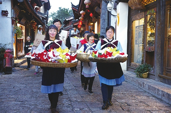 一盏盏河灯,顺着丽江古城的河流,载着对亲人的相思漂远;玉河广场上纳西嬢嬢们,会用传统的手法,制作最地道的纳西小吃,同时为前来古城的游客系上五彩线……端午的丽江古城,无论是白天吃不尽的美食,还是入夜后穿越古城大街小巷的“星河”,总能“C位”出道。 防疫期间的传统节日如何过?记者了解到,市民及游客6月19日-6月24日可以在网络媒体上看到往年的活动视频;25日,文化名人在线上讲解纳西人端午节风俗,让广大游客和市民了解丽江端午节风俗文化,传承弘扬传统节日风俗;25日还将播出在社区文化院落、居民家中拍摄“端午节纳西人家的一天”短视频,展示纳西人端午传统风俗,展示大研人的精神风貌;6月20日-7月20日,在社区文化院落、居民家中拍摄“教你制作传统美食”抖音短视频,解锁纳西地道小吃的美食密码。当然,端午节当天,你恰巧在丽江古城的话,玉河广场卡点、忠义市场卡点、白龙广场卡点,均会有工作人员为经营户、游客系五彩线、送香包,送上端午节的祝福。 本报记者 木晓雯 摄影报道