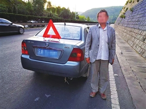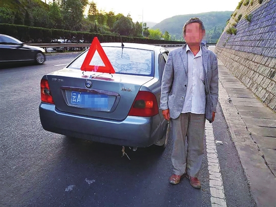 8月4日傍晚6时许,云南交警高支队昆石大队执勤民警巡逻至昆石高速公路阳宗坡路段(昆明方向)时,发现一辆云AY×××P号牌的小轿车正在倒车。更令人吃惊的是,车辆的后备箱上面,还“立”着一块三角警示牌。 民警立即停车并制止该车的交通违法行为,经询问,驾驶人祝某说,他的车出故障了,刚巧这段路是下坡,想利用惯性,把车辆倒到后面的阳宗服务区去修理。他也知道这样很危险,但觉得路不远,自己小心一点应该没事。为了“保险”起见,他还专门把三角警示牌张贴固定在后备箱上,以起到预警作用。 民警对祝某进行了严厉的警示教育,开具了罚单。而他也将为自己这次耍“小聪明”的行为,受到罚款200元、一次记12分的惩罚。民警开具了行政强制措施凭证,告知祝某在规定时限内到车管所参加学习后,方可再拿回驾驶证。之后,民警联系清障车把故障小轿车拖离高速公路,消除了交通安全隐患。本报记者 刘嘉 文 警方供图