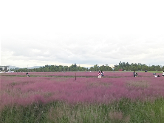 初秋的江川星云湖南岸,900余亩荷藕莲叶接天,荷花、莲蓬相间其中。嵌在荷田里的木栈道上,游客纷纷与这眼前的景致拍照“打卡”。8月15 日,主题为“邂逅星云 荷你有约”的2020年玉溪江川区星云湖南岸农旅文化节在大街街道陆家咀开幕。 现场,除了赏荷,农旅文化节还安排了丰富的活动。人群中,身着汉服的男子驾着牛车,车里载满了莲蓬、荷花;荷田畔,一曲古筝《荷塘夜色》听醉于耳,演奏者身着白色汉服头戴斗笠抚琴,仙气十足,置身此景,让人难辨天上人间。穿过一条步道,进入花期的粉黛乱子草如粉色海洋,铺天盖地,旗袍秀、瑜伽、太极在花间步道上上演,花艳人美,让人流连忘返。 据介绍,粉黛乱子草的花期将持续至11月。本报记者 李春丽 摄影报道