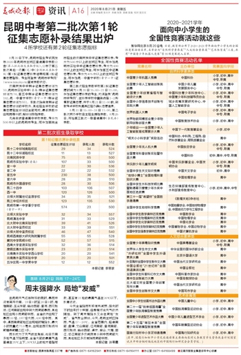 昆明中考第二批次第1轮征集志愿补录结果出炉