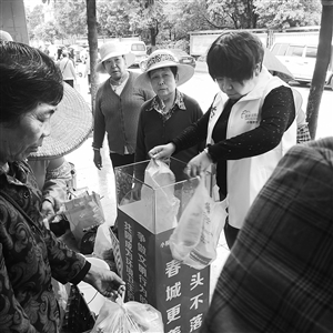 官渡区 当前,昆明市创文工作正如火如荼地开展。在官渡区,从捡烟头开始,市民的文明行为逐步成为一种习惯。 8月28日一大早,记者来到官渡区小板桥街道小板桥社区为民服务站门口,虽然还没有到上班时间,但早已排起了长队,大家每个人都拎着一袋烟头,迫不及待地等着工作人员清点后兑换卫生纸、洗衣液等礼物。 王登巧来自昭通市巧家县,来昆明打工很多年了,刚从社区为民服务站出来的她拎了一大包东西,心里乐开了花。“闲着也是闲着嘛,我今天带来了4500多个烟头,已是第二次来兑换了,总的已捡了1万个出头。我觉得这样挺好的,烟头被我们捡光了,环境也变好了,我们还能得到小礼品。 官渡区创文社会志愿服务工作指挥部启动“烟头不落地·春城更美丽”——烟头兑换活动后,在全区8个街道都分别设立了兑换点,在官渡古镇游客服务中心设立了专门兑换点。按照活动规则,官渡区居民在辖区范围内捡拾烟头,即可到9个兑换点兑换奖励,兑换时间为每周三工作时间。50个烟头兑换一对南孚电池,100个烟头兑换一盒抽纸,200个烟头兑换一提纸杯,300个烟头兑换一把伞,400个烟头兑换一提卫生纸。从8月活动启动以来,9个活动点已累计收集烟头近300万个,超过2000名居民参与到活动中。 本报记者 罗宗伟 通讯员 郭武辉 摄影报道