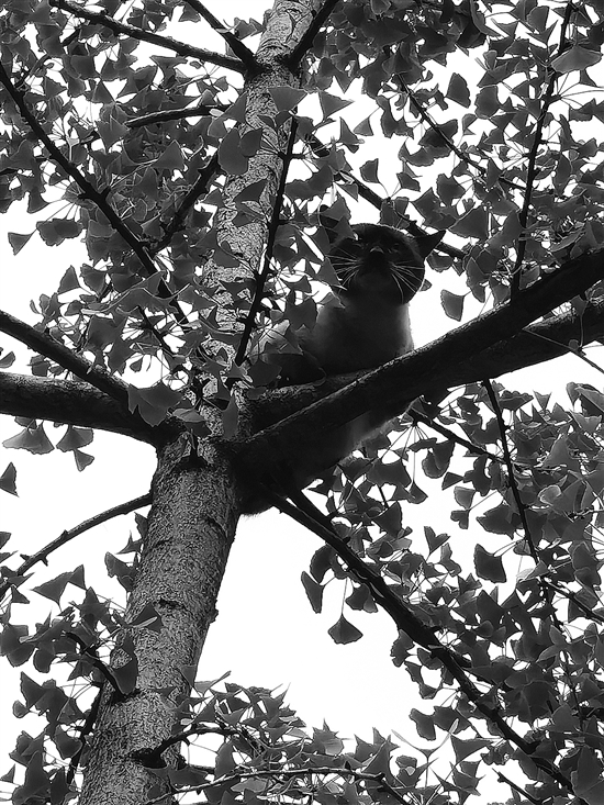 近日,位于施甸县城区广电路中春金湾小区门口,一只“喵星人”爬上了一棵近10米高的大树。可上树容易下树难,爬上树的“喵星人”却不知道怎么下来,结果被困在了树上,这一困就是6天6夜。还好被当地热心市民发现,想办法调来了一台升降机,将受困多日的小猫咪成功救了下来。 一位热心市民介绍,几天前就发现小猫咪躲在树上了,刚开始谁都没有料到这个小家伙被困住。“当时我们想猫咪不是上下树的能手吗,哪成想这只小猫咪却没有下树的本事。”后来人们发现这只“喵星人”困在树上不敢动弹,而且稍有不慎就有可能从树上摔下来。为了帮助“喵星人”,周围的市民想了很多办法。有人想到爬梯子去解救“喵星人”,但树干太细,而且“喵星人”躲的地方很高;有人想到用棍子把“喵星人”捅下来,然后用棉被接住,但这只“喵星人”也不配合。 最后附近装饰公司的老板杨元谋叫来了一台升降平台车。一名小伙子自告奋勇站到升降设备操作台上,升到树上去救助“喵星人”。 事后据小伙子介绍,当他随着升降平台渐渐升到树上时,看见“喵星人”一副惊恐的样子,估计是在树上被吓坏了,看着也很可怜,当他伸手准备去抱它的时候,“喵星人”突然举起了一只爪子,露出了凶恶的表情,看来“喵星人”完全不知道这是来救它的。由于怕“喵星人”被吓到摔下去,小伙子脱下了自己的外衣,用外衣去抱住了“喵星人”,就这样,被困了6天6夜的“喵星人”终于得救了。 小猫咪成功获救之后,几位热心市民想到被困多日的“喵星人”一定很饿了,给它买来了火腿肠,牛奶等,不一会儿这些食物就被“喵星人”一扫而空,看来它不但被吓坏了,也饿坏了。 由于不知道这只“喵星人”的家在哪里,经几位热心市民商量后,暂时由一位朋友收养。在此期间,他们也不断通过朋友圈等方式打听这只“喵星人”的主人,功夫不负有心人,在“喵星人”被救的第3天,大家找到了它的主人。 原来,这只“喵星人”和它的主人就住在它被困的大树旁边的小区里,十多天前由于主人忘记关门,“喵星人”乘机溜了出去,顽皮的它溜上了树就下不来了。 本报记者 崔敏 通讯员 王建超 摄影报道