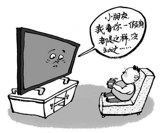 假期不少孩子户外活动时间减少、活动量下降,长时间“窝”在家里,变成了不爱运动、动一动就气喘吁吁的“沙发土豆”。有研究发现,当“沙发土豆”两周就有损健康,别让孩子再做“沙发土豆”啦! (8月30日 新华网) 点评:近年来,因物质条件提高引发的现代“慵懒症”,已经在孩子们身上呈现。“宅”不仅损害了他们的身体健康,使得少年高血压、糖尿病屡见不鲜,更主要的是消磨了他们的意志和活力四射的天性。他们是祖国的未来,需要有健康的身体,更要有吃苦耐劳的精神追求。这种“温室养花”必须叫停,防止培养出有悖时代的“巨婴”。 ——牧笛