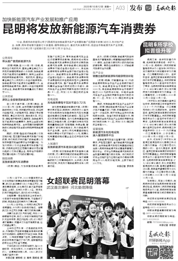 10日,昆明市政府官网公布了《昆明市加快新能源汽车产业发展和推广应用若干政策(试行)》,针对生产企业、消费、用车领域等方面制订十条措施,倡导绿色出行,推动汽车消费升级,促进全市新能源汽车产业发展。政策自2020年2月1日起施行至2021年12月31日为止。 公务用车 带头推广使用新能源汽车 《政策》明确,自2020年2月1日起,昆明市各级党政机关、国有企事业单位及公共机构新增和更新的公务车辆,除新能源汽车不能满足功能需要外,原则上全部采购和使用新能源汽车。党政机关、国有企事业单位及公共机构公务出行租赁用车,除新能源汽车不能满足功能需要以外,全部使用新能源汽车;提供公务出行租赁服务的企业,新能源汽车保有量占比不得低于50%。 公共领域 原则上全部使用新能源汽车 在公共交通方面,《政策》提出,自2020年2月1日起,全市范围内新增和更新的城市公交车、城市配送物流车、网络预约出租汽车、分时租赁汽车、驾培及考试等乘用车、景区内观光车、园林洒水车、环卫车、道路维护等市政工程用车,除新能源汽车不能满足功能需要外,原则上全部采购和使用新能源汽车。全市范围内新增和更新的巡游出租汽车全部采购和使用新能源汽车。 同时,《政策》指出将对新能源公交车实施补贴,落实国家新能源汽车推广补贴政策,市级财政对市内推广的新能源公交车按照国家和省的要求给予购置补贴。为加大城市公交行业新能源汽车的推广应用,对昆明主城五区范围内建设示范运营线路的公交车运营企业,每年给予每辆示范运营线路车3万元的运营补贴。 鼓励消费 发放新能源汽车消费券 《政策》提出,为加快推进新能源汽车推广应用工作,帮助新能源汽车企业应对疫情带来的影响,昆明市将采用发放新能源汽车消费券奖励的形式鼓励新能源汽车消费,其中新能源巡游出租车消费券不超过备案价格的40%,其他新能源乘用车消费券金额不超过备案价格的20%,新能源物流车消费券金额不超过备案价格的5%,新能源汽车消费券用于消费者购买并在昆明市落户上牌使用的新能源汽车,推广新能源汽车消费券所需资金除省级财政奖励以外部分,由汽车生产企业税收贡献所在市级财政与县(市)、区,开发(度假)园区财政各承担50%。 充电设施 充电服务费每千瓦时不超0.72元 在充换电基础设施建设方面,《政策》要求贯彻落实《昆明市人民政府办公室关于印发昆明市加快推进电动汽车充电基础设施建设实施意见的通知》,落实各项奖补扶持政策措施,加大充换电基础设施建设工作推进力度,逐步建成与电动汽车拥有量相适应的“车桩相随、布局合理、智能高效”的充电设施体系,助力新能源汽车产业发展。全市公共充电基础设施充电服务费每千瓦时不超过0.72元,规模化充电基础设施运营企业应逐步降低充电服务费。 入城通行 实施新能源汽车差异化通行政策 《政策》将实施新能源汽车差异化通行政策,对从事城市配送的新能源物流车(悬挂新能源号牌的载货车辆),除交通高峰时段及二环高架路段外,允许进入所有限行区域,并优先办理新能源物流车入城通行证。 此外,《政策》还明确,新能源汽车在市国有资产管理有限公司管理的临时停车场(点)停车,当日首次停放两小时内免收临时停车费。鼓励各类停车场(点)对新能源汽车停放给予优惠。 生产企业 销售出省的新能源车均能获物流补贴 《政策》明确,对销售到省(境)外的新能源乘用车给予生产企业每辆不超过1000元,新能源客车给予每辆不超过3000元,其他新能源商用车给予每辆不超过2000元的物流补贴。补贴资金由汽车生产企业税收贡献所在市级财政与县(市)、区,开发(度假)园区财政各承担50%。 同时,支持新能源汽车生产企业扩产促销,《政策》提出新能源汽车生产企业首次年产销量达到5万辆,按销售额的0.5%给予一次性奖励,用于支持企业技术改造和研发创新。除省级财政承担部分外,剩余所需资金由汽车生产企业税收贡献所在市级财政与县(市)、区,开发(度假)园区财政各承担50%。 监管措施 新能源汽车和充电设施 接入管理服务平台 在新能源汽车在线监管方面,《政策》要求,严格落实国家、省对新能源汽车监管要求,全市新能源汽车和充电基础设施应当接入昆明市新能源汽车运营信息管理及服务平台。该平台负责新能源汽车财政资金核查所需数据及服务支持。市级财政对该平台实施扩容及应用功能升级等有关费用给予50%财政补贴支持,上限不超过200万元。 本报记者 罗宗伟