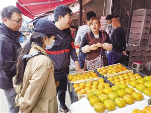 金秋十月,瓜果飘香。近日,水果市场上出现了一些新面孔。10月10日,记者通过走访昆明各大型商超、农贸市场、批发市场等,发现橙子、甘蔗、柚子、柿子等水果在秋分和寒露交替之际悄然上市,是时候打卡新一波上市水果了。 “一年好景君须记,最是橙黄橘绿时”——冰糖橙 “看着酸,吃着甜”的冰糖橙是云南的特色,记者来到昆明金马正昌水果批发市场内,发现来自玉溪和元江等地的冰糖橙是目前市场里的“新客”,根据个头大小价格在4-8元/公斤不等。随后记者走访的家乐福等各大商超也都纷纷开始出售冰糖橙。 水果批发市场的店主冯女士专门做冰糖橙生意,当天开始售卖的冰糖橙是她们今年的第一车货,冯女士说,“市场里也有10多天前开始卖的早熟的一批冰糖橙,但等真正成熟大批量上市还是从国庆节开始。今年雨水多,橙子糖分少一点,好些顾客反而喜欢这种清爽的口感。”记者随机品尝了一小块,甜而不腻,果汁饱满,味道正好。 受疫情和气候影响,今年的冰糖橙销售情况暂不乐观。冯女士告诉记者,“今年的销量能达到去年四分之一就算不错了,去年通常刚进货就被批发商买完了。”纂新农贸市场的摊主苟先生也表示,“今年销量很差,每天只能卖到100公斤左右,只有去年的三分之一。” “饮食不须愁内热,大官还有蔗浆寒”——甘蔗 俗语说,“秋日甘蔗赛过参”,干燥的秋季正需要甘蔗来润燥生津,云南省是我国甘蔗生产的主产区之一,种植面积仅次于广西,位居全国第二。 篆新农贸市场的摊主唐女士说,“这两天甘蔗刚上市,红皮甘蔗和绿皮甘蔗均5元/公斤,跟去年价格一样,目前每天可以卖200斤左右,过几天大批量甘蔗上市后销量预计还会增加。”唐女士告诉记者,“市场上的甘蔗可以持续卖到来年的三四月份,过段时间还会有临沧产的黑皮甘蔗,口感也非常好。”同时,唐女士还将甘蔗榨成汁成杯售卖,受到一些年轻顾客的喜欢。“我要发个朋友圈打卡秋天的第一杯甘蔗汁。”一对年轻情侣说,榨成汁的甘蔗既解渴又方便。 “露浴梧楸白,霜催橘柚黄”——柚子 具有“桔中之王”称号的柚子在秋令水果中非常有代表性,秋季食用健胃润肺,富含大量的维生素C。纂新农贸市场内,10元一个的西双版纳甜柚正卖得火热,据摊主莫先生介绍,“去年每个柚子折合下来卖30元,今年进价便宜,10元一个的柚子非常好卖,每天可以卖到两三百个。” 10月以后,福建柚几乎占据了昆明各大水果市场,金马正昌水果批发市场的店主胡先生刚结束西双版纳甜柚的出售,目前近70平方米的店里全部放置着福建柚,每天出售量在10-20吨之间。记者还在沃尔玛看到,各个产地的白肉柚、红肉蜜柚占满了货架,最便宜的只要9.9元便能买上一个。 “林枫欲老柿将熟,秋在万山深红处”——柿子 通常,霜降节是柿子成熟的时期,但适值寒露刚过,记者便在市场上看到了柿子的身影。笑脸盈盈的周女士守着身前一个不起眼的小摊,圆形簸箕上一块蓝色的旧布上放着10来个椭圆形柿子,蓝红相衬,色泽鲜艳。周女士说:“这是自家树上的柿子,昨天才摘下来卖,甜着呢。”记者忍不住买了几个品尝,汁多甘甜,果肉细腻。 除了传统印象中红彤彤、软绵绵的柿子以外,10月份刚上市的保山脆柿子以其甜脆的口感成了部分人的新宠,看来并非“柿子专挑软的捏”。市民王先生表示,“超市的精品水果区也有脆柿,但是价格比较贵,我住在市场旁边,最近没事就来看看脆柿上市没有。”记者在水果批发市场上看到,脆柿价格比软柿更高,从陕西批发的普通软柿子售价为4.5/公斤,而保山脆柿的批发价为6.5/公斤。据摊主周女士介绍,目前每天能卖400公斤左右。 实习记者 刘文波 摄影报道