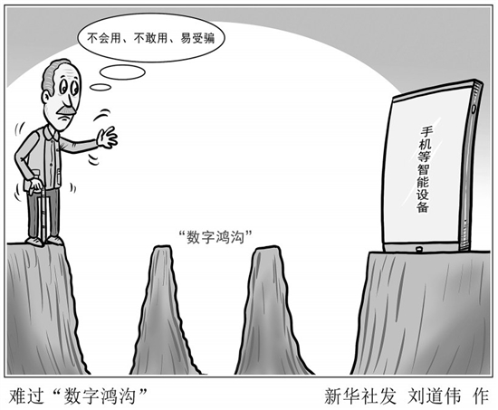 面对生活方式巨大变化所带来的“数字鸿沟”,老年人群体面对智能设备“不会用”“不敢用”“易受骗”等问题也日益凸显。(新华社10月25日)