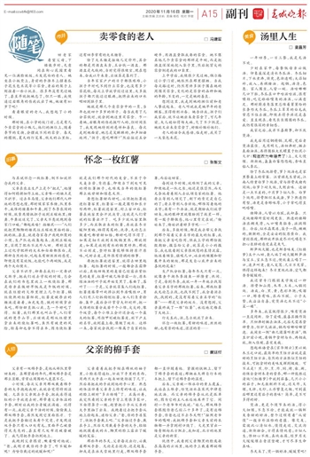 □ 查晶芳 一年四季,一日三餐,我是无汤不欢。 少时在家中,每餐饭母亲必做汤。印象最深是清水冬瓜汤。冬瓜切片,下水煮沸,须臾,色渐透明;大蒜切碎,放入,再调猪油。起锅,汤清,色亮。家人围坐,人皆一碗。汤咕嘟嘟几口下肚,冬瓜在口中咕滋咕滋,很有嚼劲;吃完舔舔嘴角的汤沫,心满意足。那时厨房角落里总堆着舅舅给的长条形大冬瓜,冬瓜上茸茸的白毛我常忍不住去摸,即便弄得手痒还是喜爱。直至现在,看见长长圆圆的冬瓜,我仍有很深的亲切感。 成家之后,我并不喜厨事,却不厌煲汤。 我先后用过钢精锅、瓦罐,觉后者煲汤最佳。先用明火,汤初沸时,撇去表面油沫,再将圆肚大瓦罐置于红泥小火炉(现在改为电焐煲了)上,文火慢煨。渐渐地,袅袅白雾悠悠起,香味直钻人鼻孔。 除了冬瓜炖排骨,萝卜炖汤也是家里餐桌上的常客。汪曾祺先生曾说,江南人特重白萝卜炖汤,常与排骨或猪肉同炖;白萝卜耐久炖,久则出味。这话是一点不差的,十月萝卜似人参。白萝卜炖肉,排骨酥烂未成渣,萝卜熟透仍有型,汤更是香醇味厚,小子常吃得直吧嗒嘴。 猪蹄汤,人皆以为腻,我却喜。只是炖猪蹄所需时间更长。熟透的猪蹄汤浓稠爽滑,入口嘴角黏香,滋润绵长。冷后,似水晶果冻,筷子一戳,嫩嫩的,颤颤的,全是妥妥的胶原蛋白。我曾经很瘦,那种放开肚皮尽兴吃喝毫不担心长胖的感觉真是爽气。 鲜笋炖火腿,也是鲜香味美。《红楼梦》五十八回,袭人端了碗火腿鲜笋汤与宝玉,宝玉急不过,便就桌上喝了一口,连声叫烫,袭人笑骂:几日不见荤,馋得这样起来!冬日里炖此汤,空气都香香暖暖的。 我还曾专门跟朋友学做过一种汤。排骨加山药、木耳、玉米,入锅同炖。汤成,白、黑、黄,色彩丰艳;吸溜一口,醇香有味,浓而不腻。小子大赞,我沾沾自喜,觉煲汤之术不过“小菜一碟”。 多年来,我菜做得很少,唯有煲汤一直没间断。除了爱喝,最喜其操作简单。只初沸时撇去油沫,之后无需再劳神费力,任炉火滋滋,锅内咕嘟咕嘟冒泡。我闲坐一侧“曲几团蒲听煮汤”,偶至炉前小视,看锅中食材与水,两相成就,渐入佳境,甚觉美哉。 想起林语堂在《京华烟云》里以姚木兰之口说,最简单的烹饪方法就是最好的烹饪方法,自然的方法胜似烹饪的技术,可把食材的美味发挥到极致。可不正是?煎、炒、烹、炸、焖、烤、氽、涮,论保全食材本身的营养,哪一种能胜过清炖?《红楼梦》中说到茄鲞,几只小小的茄子,加无数配料不说,还又炸,又煨,又拌,又炒,工序繁复之极,可到最后哪里还有茄子的原味?简单,是不可多得的好。 煲汤,更是个慢节奏的活,得小火细煨,不急不徐,才能成就一锅鲜美香甜的好汤,整个过程有着“从前慢”一般古朴温雅的意蕴。像交友,需彼此心清似水,慢慢走近,交流沟通,渐渐融合,方得真情纯意;亦似人生,惟初心不改,真纯永葆,经岁月文火缓缓煨去青涩坚硬,才可尽享生命真味。 冬天来了,煲一锅好汤,暖暖胃吧!