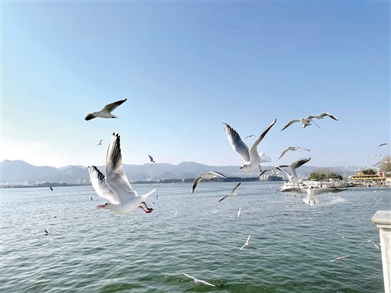 11月17日,“乾道夫暖冬行动关爱红嘴鸥公益活动”在昆明正式启动,将组织投喂鸥粮、观鸥不文明行为劝导、开展野生动物保护宣传等活动。据昆明鸟类协会副秘书长王智斌介绍,红嘴鸥大部队已经到昆明了。从各观鸥点的数量来看,约有3万多只。本报记者 左学佳