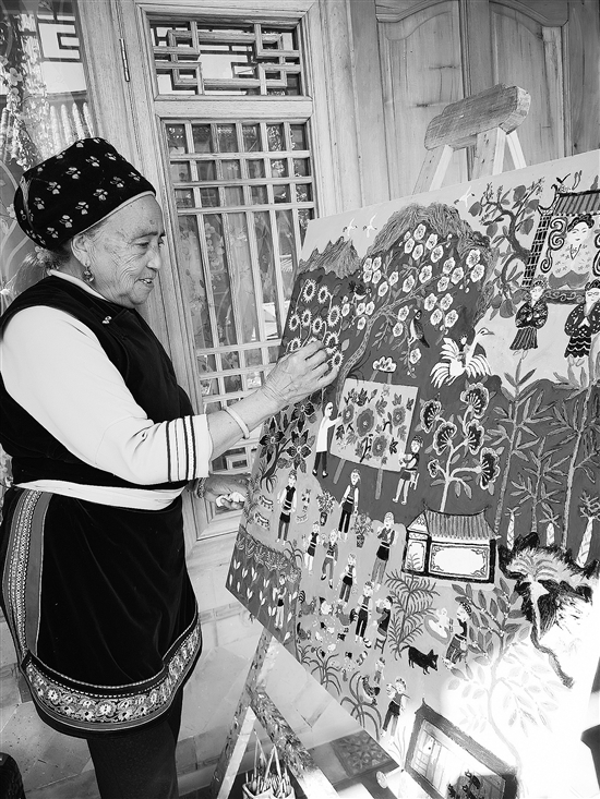 人们常说,有两种生活特别容易打动人,一种是艺术家的生活,一种是像艺术家一样的生活。在大理双廊镇火山村,生活着这样一群充满文艺气息的白族老奶奶,她们每天劳作之余,安静地坐在画架前,用油彩一笔一画勾勒自己的生活。她们都是隐居双廊的艺术家沈见华的“民间弟子”,艺术已成为她们日常生活不可或缺的一部分。 “现在眼睛看得见,脑子也还灵,活到几岁就画到几岁……” 老外婆(87岁) 不知不觉就画了10年 87岁的王秉秀,村里的人都叫她“老外婆”。她是双廊农民画家群体中年龄最长的一位,也是村里第一个跟着沈见华学画画的白族老奶奶。 王秉秀18岁嫁到双廊,育有7个子女。虽目不识丁,记忆力却好得惊人,7个子女、15个孙子、12个重孙的电话号码她全都烂熟于心。2008年,艺术家沈见华初到双廊村,想为当地的村民做点事,便挨家挨户上门为村里的老年人拍照片、画像……不论大事小事,村民们都爱找他帮忙,他也很乐意。到2010年,老外婆的6个女儿全都嫁到了外村,留在村里的小儿子也没能力顾及她。老无所依、生活困难的老外婆上门寻求沈见华的帮助,希望他能从中斡旋,帮她申请低保。而沈见华给了老外婆一个更好的建议:跟着他学画画,因为卖画的钱比低保多。就这样,老外婆成了村里第一位学画画的老奶奶。 第一幅画画什么呢?老外婆想到了老虎。勾线条,调色彩……一笔一画地进行着。画了一半之后,老外婆丢下画作去赶集。画作刚好被沈见华看见,老虎的脊梁像把弓,就像要弹出来一样,虎虎有生气。沈老师的表扬大大地增强了老外婆的自信心,她顺利完成了画作,被人买去作为收藏。老外婆跟着沈见华学画画的消息不胫而走,村里越来越多的老奶奶主动申请加入到了农民画家的群体中。于是,沈见华带领她们成立了双廊农民画社,每天和老奶奶们一起画画。 不知不觉中,老外婆就画了10年,卖出了一幅又一幅画作。老外婆的每幅画作色彩搭配都很大胆,画作主要以花、鸟、石、人为素材,绘画的内容大多与她的生活息息相关。10年来,她先后跟随沈见华到北京、上海、成都、杭州、珠海、深圳等地参加了双廊农民画社的画展,每到一地,老外婆的画都很受大家喜爱。 “平均每年作七八幅画,今年已完成了5幅,其中两幅已经卖出去了。”老外婆说。她介绍,近日刚完成了一幅画作,通过绘画语言,讲述了她嫁为人妇后的生活故事。 沈见华表示,将在老外婆90岁生日时,为她办一次个人画展。老外婆说:“现在眼睛看得见,脑子也还灵,活到几岁就画到几岁。” “下一幅画,想把从前双廊红山本主庙前赛龙舟的场景画出来……” 小双娘(57岁) 画里画外都是幸福生活 记者来到小双娘家时,她正在画30多年前和丈夫新婚时的自画像。画上的小双娘身穿桃红色的“金花服”,丈夫穿着一件深蓝色的中山装,在粉红底色的映衬下,喜悦和幸福“溢”了出来。小双娘说:“我们结婚的时候,没有条件拍照,现在自己画出来正好弥补了这个缺憾。” 今年57岁的小双娘大名叫赵新莲,因生了一对双胞胎女儿而得名“小双娘”。2008年,沈见华租了她家在海边的一院房子,并雇请她到家里做饭、打扫卫生。经过近两年时间的耳濡目染,2010年,刚刚当上外婆的小双娘也和画画结了缘,与老外婆成了“同学”。她利用每天劳作的间隙,背着小外孙去学画画,渐渐成为了双廊农民画家群体中最有成就的一位。 小双娘的第一幅画,画的是她从前划船去采玉米,回来后直接把满载玉米的小船划进了在海边的家。让小双娘没想到的是,这幅画被沈见华以8000元的价格卖出去了。此后,原本对画画没有“底气”的小双娘越来越有信心,一直坚持作画至今。 有较强写生能力的小双娘,她的画作主要取材于生活:父亲划船卖布,夫妻俩在海上撒网捕鱼、捞螺蛳……她总能画得栩栩如生。10年来,小双娘画了100多幅画,《两家办事》《大理三塔》《玉米》等远近闻名。其中一幅4米×80厘米的5连幅“大理洱海全景图”最为惊艳,两年前以8万元的高价卖到了省外。 今年受疫情影响,双廊农民画社未能外出举办画展,小双娘的画作没有了前几年那么好的销量,她便带着儿媳做起了小吃生意。尽管她每天都被安排得满满当当,画画也从未缺席过一天。 在小双娘的带动下,妹妹赵新强、小姑子赵光菊一有空便来和小双娘一起画画。小双娘说:“下一幅画,想画赛龙舟,把从前双廊红山本主庙前赛龙舟的场景画出来……” “在‘农民画社咖啡馆’里耳濡目染,对画画,我似乎多了几分想法……” 光菊(54岁) 因鸡与画画结缘 今年54岁的光菊,最擅长养鸡,对鸡特别熟悉。3年前,张扬导演拍摄电影《火山》,在光菊家选景,并由光菊出镜画了一只大公鸡,画作当时就被买走了。因为这幅公鸡的画作,她自然地加入到了农民画社的行列。 加入农民画社后,光菊画的第一幅画,是她在自家旁边的地里耕种时的场景。第二幅画,是她种的小白豆丰收。第三幅,是她当医生的父亲正在帮患者包药。记者见到光菊的时候,她正在院子里画她的第四幅画。这幅画,画的是“鸡上树”,一只只小鸡仔排队站在树杈上。没上过学的光菊,创作灵感来源于她对生活的所观所感。 因《火山》的拍摄,沈见华将光菊家的老房设计布置后成了现在的“农民画社咖啡馆”。在咖啡馆的改造过程中,光菊参与了大量的劳动。咖啡馆营业后,她负责环境卫生等。
