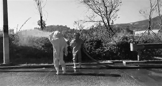 当下,滇中地区的油菜花含苞待放,养蜂人也和蜂儿一样寻着花儿来了。 12月11日14时28分,峨山县小街收费站迎来了一群“不速之客”:一批载满蜂箱的大货车进站交费时,由于未加盖货车篷布,大群蜜蜂从蜂箱内飞了出来,四处乱飞,还蜇伤了收费站口的一名工作人员,严重影响了进站车辆的安全通行和人员安全。工作人员拨打了119求助电话。14时43分,消防员到达现场。1名消防员配合收费站员工进行交通管制;2名消防员穿上防蜂服后携带杀虫剂对四处飞散的蜜蜂进行喷杀;另2名消防员用水枪驱散蜂群。10多分钟后,安全隐患终于排除。 本报记者 李春丽 通讯员 刘春蕊 摄影报道