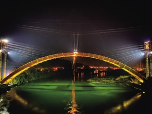 12月15日晚,由云南交投集团承建的主跨为300米的景海高速公路澜沧江特大桥主体钢箱拱成功合龙。 据介绍,景海高速主线全长约54公里,主线起自景洪市东,止于勐海县城南,是勐海县的第一条高速公路。澜沧江特大桥是景海高速公路的重点控制性工程,桥面为双向四车道。大桥主跨为300米,横跨澜沧江,位于景海高速K7+795处,是云南省第一座跨径300米的上承式钢箱拱桥。 景海高速公路建成通车后,将实现西双版纳州“县县通高速”的目标,届时从景洪到勐海的行车时间从目前的90分钟缩短到30分钟左右,实现半小时经济圈的目标。 本报记者 罗宗伟 通讯员 王卓 摄影报道