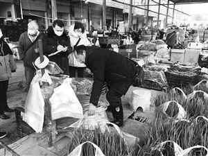 此前,本报1月8日A02版对“昆明多个农贸市场售卖掉色小葱”事件进行了报道,随后,该报道引起昆明市市场监管局的高度重视。1月9日清晨,数百名市场监管人员奔赴辖区农贸市场、商超等地进行突击检查。昆明市市场监管局食品总监陈柄旭表示,将下架市场上发现的“掉色葱”,作暂停销售处理,并抽样送检,联合农业部门对检测结果研判后作出处理意见。 王旗营蔬菜批发市场是云南蔬菜主要集散地。9日清晨,市场监管人员分成若干小组对批发小葱的各个区域进行排查,很快就发现了不少“掉色葱”。“这些葱从根部开始就有一些蓝色印迹,用手就能擦掉。按照要求,我们将全部下架做进一步检测。”市场监管人员告诉记者。经过询问商贩得知,这些“掉色葱”进价在11元左右,商贩通常会加价1元至2元后进行批发销售。 “我们都是二道贩子,对于葱的详细来源不会过问,什么蔬菜好卖我们就进货来卖,对上家的情况不太了解。”商贩张勇说。据市场监管人员介绍,这些葱上的蓝色物质极有可能是一种杀菌剂的残留物,作用为保证蔬菜的新鲜,避免绿叶蔬菜变黄,这种物质可能在种植环节就已添加使用。 陈柄旭表示,在接到“掉色葱”的情况反映后,他们第一时间行动起来,相关处室制定了工作要求。从目前反馈的消息来看,不少地方已经发现了“掉色葱”。市场监管人员将下架在市场上发现的“掉色葱”,作暂停销售处理,抽样送检后,联合农业部门对检测结果研判,作出处理意见,调查结果将第一时间向社会公布。 本报记者 王磊 摄影报道