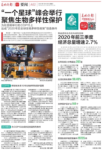 全省经济总量从2015年的13717.88亿元提高到2019年的23223.75亿元,2020年前三季度增速为2.7%。这些成绩的取得,源于我省坚持走生态优先绿色发展路子的结果。5年来,我省16个州市和省级有关部门,以“钉钉子”精神扎实推进生态环境整治,推进全省经济社会发展全面绿色转型。昨日,云南省推动长江经济带发展五周年新闻发布会在昆明举行。在会上,省发改委、省工信厅、省生态环境厅等多部门联合交出了一份亮眼的“绿色答卷”。 去年完成小水电退出267座 深入开展长江经济带专项整治。推动小水电清理整改工作,2020年,全省完成小水电退出267座。开展长江干流岸线利用项目清理整治,63个项目均已完成整治。全省排查出188家“三磷”企业(矿、库),均制定了“一企一策”整改方案。 抓好船舶和港口污染突出问题整治。累计完成1583艘船舶污染物收集处理设施改造。加强港口治污,水富、景洪、思茅、大理、昆明5大港口和其他纳入整治的75个码头,均配备了垃圾、生活污水、含油污水的存储容器及接收车辆、接收船舶,覆盖率达到100%。 生活垃圾处理率98.49% 长江流域云南境内的所有城市、县城和建制镇具备污水和垃圾收集处理能力,城镇污水处理率达92.75%、生活垃圾处理率达98.49%。 5年来,全省累计建成城市(县城)生活垃圾无害化处理场128座、生活垃圾焚烧发电厂22座,在建6座,生活垃圾转运站473座,城市(县城)生活垃圾无害化处理能力由2015年底1.62万吨/日提高到2020年底2.29万吨/日。全省99.2%的乡镇镇区和98.6%的自然村对生活垃圾进行了收集治理,城镇生活垃圾渗滤液处理设施、收转运体系正常运行,基本达到全收集、全处理。 规模养殖场粪污处理设施装备配套率95.12%。全省400总吨以上船舶全部配置生活污水收集处置装置,共接收船舶垃圾54.73吨、污水26.86立方米。588座尾矿库已经完成治理510座。 关停保护区矿山144个 以沿边、沿江、沿路“三沿”绿化优化为重点,以点带面推进国土山川补绿增绿,全省累计完成营造林3239.86万亩,其中,长江流域完成营造林1565.05万亩。湿地面积921.69万亩,湿地保护率52.96%。草原面积1.09亿亩,草原综合植被覆盖度达到85.9%,森林覆盖率达到62.4%。目前全省共建立各类自然保护地360处,总面积8294.6万亩。 加快矿山生态修复,全省金沙江流域开展了380座废弃露天矿山修复工作,修复总面积2.02万亩;全省涉及九大高原湖泊保护区的矿山共172个,已关闭144个,洱海流域关闭的57个矿山已全部完成修复。 落实国家长江流域10年内全面禁捕的要求,全面停止受理长江流域重点水域内生产性捕捞渔船检验行政许可。 对九大高原湖泊施行“一湖一条例、一湖一规划”的系统治理。“十三五”期间,九大高原湖泊保护治理已完成投资490亿元。2020年1-11月,抚仙湖、泸沽湖保持Ⅰ类水质,洱海、阳宗海水质为Ⅲ类,滇池草海水质达到IV类,实现了湖泊水体质量总体稳中向好的目标。 国家明确要求的长江流域“富民大桥、通仙桥、西观桥”3个劣Ⅴ类断面,2019年提前一年完成消劣任务,断面水质呈现好转趋势。纳入全国黑臭水体整治监管平台的33条黑臭水体均已消除黑臭。 受理各类环境资源案件19725件 全省共设立12个环境资源审判庭,在全国率先探索建立民事、刑事、行政、公益诉讼执行“四合一”审执模式,2018年以来,共受理各类环境资源案件19725件,审执结案18083件。全省公安机关2018年以来共侦办环境污染刑事案件401起、逮捕121人,办理行政案件632起、行政拘留696人。 本报记者 闵楠