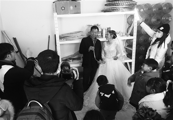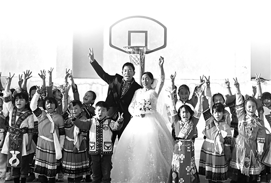 1月6日下午,弥勒市新哨镇清河小学校长杨忠华,收到了志愿者给他和老伴高琼仙拍摄婚纱照的电子照片。他在电脑上下载后一打开,漂亮的照片让老伴高兴得合不拢嘴。杨忠华在学校里拍婚纱照的故事,一时间传遍了周围的十多个村寨。 办校 腾出家中房子当教室 清河村到弥勒市区有40多公里,因为地处深山、交通不便,这里历来缺教师。 杨忠华家住在清河村委会大龙树村。1983年秋,高中毕业的杨忠华打算到深圳的一家电子厂上班。临行前的头天晚上,村支书把杨忠华请到家里喝酒,给他送行。当时,大龙树村只有30多户人家。村支书一脸忧愁地说:“寨子里没有小学,家长顾不上、也不放心把六七岁的娃娃送去5公里外的小学读书,愁啊。要是村里有老师、有学校,就能解决家长送娃娃读书的难题,这些娃娃长大后也能像你一样有文化,到外边的工厂上班赚钱,那是多好的事啊!”杨忠华听懂了村支书的意思,当夜,他辗转反侧无法入睡。经过反复思考后,第二天一起床,杨忠华就动手腾出家中最好的一间房子当教室,拿着村里每年补助的100元钱,一个人在村里招收学生,让一到三年级的适龄学生前来读书。此后,这个只有一位老师的校点,杨忠华坚守了15年。到1998年校点撤并时,杨忠华共输送出200多名学生。 杨忠华的故事感动了离大龙树村4公里的普架山村的姑娘高琼仙。她默默地关注着这个有机会到外上班挣钱却留下来教书的小伙子,并不时到“学校”看望杨忠华,时间长了,两个人产生了感情。1987年秋,杨忠华到弥勒县城脱产培训半年,因为家中老人需要照顾,高琼仙不顾世俗的眼光,顶着父母的反对,搬到杨忠华家照顾他的父母。杨忠华深受感动,培训结束后就和高琼仙结婚了。 那时候,农村不兴领结婚证,当时只有高琼仙的几个闺蜜前来祝贺,一直到儿子出生,高琼仙的父母才认了这门亲事。而杨忠华则对岳父岳母承诺,他会对媳妇好,有机会到县城照张结婚照。哪知道之后一直忙于学校的事情,结婚照没照成。1998年,大龙树村校点撤点并校到清河小学,杨忠华任清河小学教导主任。两年后,杨忠华任校长。直到今天,高琼仙一直留在大龙树村耕田种地照顾家人。 担任清河小学校长后,杨忠华更忙了,他到处联系社会力量支持学校建设。30多年来,在杨忠华全身心的投入下,清河小学获得了各种殊荣,变成了一所花园式学校,他亲自教出来的学生就有1000多人。很多学生如今已成为了各行各业的骨干力量,但结婚照的事,却成了高琼仙偶尔拿来打趣杨忠华的戏言。 心愿 和妻子补拍婚纱照 去年,杨忠华被推荐参加蔡崇信公益基金会乡村校长奖。 蔡崇信公益基金会项目经理周宇琪介绍了此次“迟到33年的婚纱照”公益行动的情况。周宇琪说,在初筛第二届蔡崇信“以体树人”杰出校长评选申报材料时,杨忠华38年坚守山区小学“以体树人”的故事很感人,他“想还妻子一套婚纱照”的这句话,深深地印在了工作人员的脑海中。于是,工作人员就在阿里巴巴内网论坛上发了一个“这件迟到33年的婚纱,能赶上吗?”的帖子,引起了热烈的反响。大家争相跟帖说:不仅迟到的婚纱能赶上,还要汇聚阿里巴巴志愿者中的摄影、化妆、导演、制作人才。在1月3日,杨忠华夫妻牵手33年、妻子55岁的生日这天,志愿者帮杨忠华实现了还妻子一套婚纱照的心愿。 “开始是家里穷,我又把家里最好的一间房子腾出来当教室。丈母娘家担心女儿嫁给我后会吃苦受累,不同意我们结婚,所以就没有摆结婚喜宴。后来工作忙,加上孩子出生,妻子说再补办结婚喜宴会让人笑话。拍套婚纱照的事,妻子倒是惦记着呢。有几次都同妻子商量好了,学校放假就去拍婚纱照,结果假期里领导又派我外出学习,耽误了。后来妻子就说:你天天有事,还是等几年你退休了,闲的时候去补拍婚纱照。” 杨忠华说出了一直没有摆结婚喜宴、拍结婚照的原因。 拍照 妻子满脸洋溢着幸福 1月2日,7名来自浙江蔡崇信公益基金会、阿里巴巴的志愿者,一齐来到了弥勒市。3日上午,这场名为 “迟到33年的婚纱”在清河小学校内开拍。拍摄期间,志愿者们给55岁的高琼仙送了生日礼物。 拍摄现场,高琼仙害羞地接受着志愿者们的化妆,并穿上了专门为她定制赠送的婚纱、头饰、红鞋。听着老伴杨忠华念着蔡崇信公益基金会专门设计制作的520明信片上,一个个阿里巴巴志愿者写上的祝福语,高琼仙脸上洋溢着幸福的笑容,自言自语地重复一句话:“嫁给老师对,嫁给杨老师真好!” 杨忠华老师要在学校拍婚纱照的事传到了学生的耳中。很多在外地工作的学生,借元旦放假赶回学校,在看望杨老师的同时,也给他们送上了美好的祝福。 金平县大寨乡新发寨小学校长伏光云说:“我是杨校长38年前在家中办学的首届学生,要不是杨校长当年的付出,哪有我今天为山里孩子服务的机会。” 云南师范大学大二学生杨龙燕说:“我高考志愿报的全部是师范院校,目标就是像杨校长一样,当一个大家喜欢、尊敬的老师。” 清河小学教师肖树发说:“我是杨校长上世纪90年代清河小学的学生。2015年我体师毕业,坚决要求回清河小学教书,就是想在助力杨校长的同时,把他对乡村教育的那份爱传承下去。” 弥勒市新哨镇中心校校长平永良说:“我是杨校长的学生。杨校长是我最敬佩的老师和校长。他当清河小学校长22年来,放下身段四处求援,争取到众多部门、爱心企业