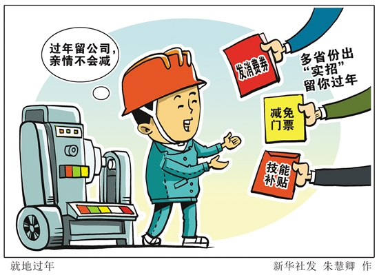 继29省份倡议“就地过年”后,人力资源和社会保障部等7部门近日印发通知,将于1月21日至3月底在全国开展“迎新春送温暖、稳岗留工”专项行动,鼓励引导农民工等务工人员春节期间安心留在就业地。 在外务工的你,这个不一样的春节,为了你的“小家”和我们“大家”,安心留下可好? 发消费券 减免门票 技能补贴 多省份出“实招”留你过年 45岁的叶国栋,是杭州东华链条集团有限公司的一名装配工人。往年都要返回老家农村过年的他,今年和妻子商量,打算春节留在杭州。 “回家‘年味’肯定更足,但路上还是有风险,万一要隔离更划不来。毕竟有健康,才有团圆。”叶国栋说。 “出门有风险,钱包还会扁;过年留公司,亲情不会减。”“隔离十四天,不如留下多挣四五千。”面对严峻复杂的疫情防控形势,越来越多在外务工者像叶国栋一样选择留下。 据不完全统计,已有北京、上海、广东、浙江、河南等29省份陆续发出“春节期间非必要不返乡”的倡议。一些地方针对外来工推出了免费邮寄年货、减免景区门票、发放购物券等多项鼓励政策。 用工大省广东,各级人社部门早早发出“致务工朋友们的信”,建议大家“过节不回家,把平安捎回家”。各级工会计划投入至少2600万元,向留下的工友们赠送18万份以上慰问年货或新春网购券。 广东肇庆除提供外地务工人员每人300元补贴外,还将送出消费券、A景区游览券、免费电影票、免费技能培训等“暖心大礼包”。 福建泉州将给外地职工发放每人200元网上红包,困难职工家庭每户给予1000元补助,春节期间取得职业证书的最高还可获得3000元补贴。 人社部相关负责人表示,1月21日至3月底专项行动期间,将鼓励企业发放“留岗红包”“过年礼包”,落实好失业保险稳岗返还、职业培训补贴等政策,适当提高补贴标准,支持中高风险地区、重点行业,引导企业不裁员少裁员。 按照专项行动安排,各地还将组织多种形式的“送温暖”和集体过年活动,餐饮商超、医疗卫生、治安消防等服务供应不断线,让务工人员留在就业地安心过春节。 派红包 充流量 发活鱼 企业为“留人”也是拼了 “是否被逼婚?是否被相亲?何以解忧,唯有留守。”“公司福利这么好,过年留守要趁早,留守加班可尝试,额外奖励两千四。”近日,企业挂出的一串串标语在网上走红。为鼓励员工“就地过年”,各大企业使出浑身解数。 “我们给所有员工准备了超市购物卡,将在节前、节后派发过年红包、开工红包。大年初二还会给留下过年的员工发放年货。”杭州东华链条集团管理部副总经理刘冬根告诉记者。 “今年春节劝家政工留在上海比往年容易,公司会奖励所有留守员工200元,干活多的最高奖励1000元。”上海家事佳家庭服务公司董事长李娜说。据记者了解,有的家政公司鼓励员工“五一”假期再回家,届时报销返乡车票。 “就地过年,不是将就过年。”中国建筑集团国内在建的12000多个工地,频出“鲜招”鼓励引导农民工坚守当地过年。天津地铁七号线项目部为留下的工友们集体办理退票,提供充值话费和流量服务,还采购米面油、干果等年货;武汉北辰经开优+项目部捕捞了放养半年的千余斤鱼,发给就地过年的职工和106名农民工友。 加班工资 错峰放假 弹性调休 落实待遇保障最能留人稳心 留下过年可能增加企业负担,会不会找理由被解聘?春节坚守岗位,加班工资怎么算? 针对这些焦点问题,北京市人社局近日会同多部门发文明确,外来务工人员留京过年期间,用人单位不得违法终止或解除劳动合同;同时要求依法保障2月12日、13日、14日三天法定节假日加班的发三倍工资,11日、15日、16日、17日四天休息日安排劳动者工作又不能补休的,支付不低于200%的加班工资。 “专项行动期间,将推动各地落实好工资、休假等待遇保障,引导企业合理安排生产、错峰放假调休,以岗留工、以薪留工。”人社部相关负责人表示。 亲情难舍,春节是仪式,也是一种情结。 “我在大连打工13年了,老家是黑龙江绥化的,今年疫情回不去家,爸妈你们要保重好身体。” “就地过年没啥,就是希望企业和工厂解决好打工人的吃住问题,等年后能让我们回乡轮休。一年也就回去一次,家里老人和小孩很久没见了。” “工地停工,饭店餐厅都关门,工棚冷飕飕的,这些能不能协调解决好,给在外漂泊的游子提供一个更温暖的港湾。” “28年来头一次要独自在外过年,感受可能会很不一样。留下就是做贡献吧,期盼能有防疫和团圆的最优方案。” 网友们的留言,蕴含对各地倡议的响应支持,也透出了诸多期盼。 对此,7部门在通知中强调,鼓励有条件的地方对春节期间连续生产的重点企业给予适当支持;及时对符合条件人员兑现失业保险待遇、临时生活补助,避免发生困难群众求助无门。 在保障好就地过年之外,部分地区也正在细化措施方案,全力帮助留守儿童、空巢老人等特殊群体安心、舒心过好年,让在外务工人员减少后顾之忧。 新华社记者 姜琳 王优玲