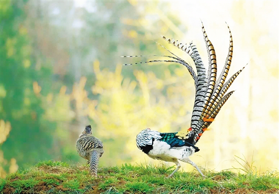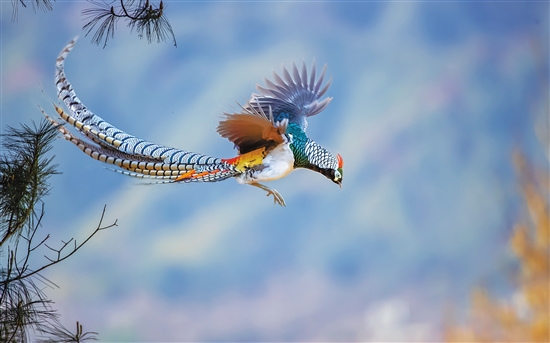 会泽黑颈鹤国家级自然保护区监测发现, 去年越冬以来,来念湖过冬白腹锦鸡的数量明显增加,目前达到了500余只。 白腹锦鸡属国家二级重点保护鸟类,俗称箐鸡,为鸡形目雉科锦鸡属鸟类。雄鸟长约140厘米,雌鸟长约60厘米,以农作物、草籽、竹笋等为食,兼食昆虫。其毛色华丽,体态轻盈。重庆的观鸟爱好者老张每年都会来观鸟拍鸟,他说:“漂亮的白腹锦鸡在树林中嬉戏,让我流连忘返。” 白腹锦鸡常栖于多岩而荒芜的山地,出没于多荆棘的灌木丛及矮竹间,极善奔走,飞行能力差,遇危险时多通过疾速奔跑和藏匿来避敌。 据会泽黑颈鹤国家级自然保护区工作人员介绍,近年来,随着保护区管护力度的不断加强,当地生态环境得到极大改善,群众爱鸟护鸟意识不断提高,鸟类生存环境进一步优化,保护区内的鸟纲动物的物种和数量也在不断增加。 本报记者 蒋琼波 通讯员 陈南英 刘云成 摄影报道