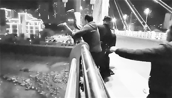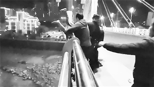 1月26日晚,怒江州泸水市一男子因家庭情感纠葛,酒后去到怒江通达桥,翻爬到护栏外欲跳江轻生。21时05分,泸水市公安局110指挥中心接到群众报警后,迅速报告主要领导,并指令西城派出所、巡特警大队、消防应急救援力量迅速到达现场。 男子麻某(19岁)赤裸上半身站在通达桥中段的栏杆外侧,情绪激动并扬言:“我不想活了,我要跳江。你们不要过来,过来我就跳下去。” 怒江州公安局局长刘松明到达现场后,迅速安排消防救援大队分两组,一组携冲锋舟到江面待命,一组在桥面参与处置解救,同时将西城派出所、巡特警大队、市局召集值班警力组成三组择机控制解救。时间一分一秒地过去,21时40分,在其被警方安排的场景成功吸引注意力的瞬间,将其控制解救。 经了解,麻某因父母离异后,长期被父母无视,其要与女朋友结婚也没有得到父母的支持,生活、经济上都没有得到父母的帮助。1月26日17时开始在家喝白酒,20时打车到通达饭店门口与其父亲交谈无果后又买了两瓶啤酒喝下,随即产生轻生的念头便步行到通达桥中间翻出栏杆外侧扬言要轻生。 因该男子的一时冲动造成桥面交通瘫痪,临江路人群聚集,依据相关规定,麻某严重扰乱公共场所秩序,被泸水市公安局依法给予行政拘留5日的处罚。 泸水警方在此提醒广大市民,无论遇到任何困难,切不可一时头脑发热做出类似轻生举动,以免酿成苦果。 本报记者 崔敏 通讯员 熊夏萍 摄影报道