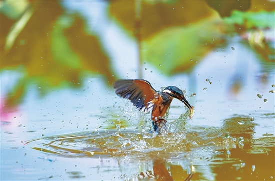 留得残荷赏翠鸟,一静一动,一生一死……一只只色彩艳丽的翠鸟飞来停在残荷上,一幅迷人的惠风和(荷)畅(唱)图尽在眼前。初春的曲靖市麒麟区城郊的沿江街道庄家圩真诚水产基地,荷塘幽幽,翠鸟翩翩,堪称翠鸟的天堂。 首次拍到白胸翠鸟 庄家圩真诚水产基地生态环境良好,水产丰富,多类水鸟栖息于此,其中艳丽的翠鸟是一绝。2020年6月以来,全国各地的摄影爱好者陆续前来,蹲守拍摄翠鸟的风姿。这里不仅有普通翠鸟,还有白胸翠鸟和蓝翠鸟,从公开资料看,白胸翠鸟在云南还是首次被摄影爱好者拍到。 真诚水产基地占地200亩,大多是湿地、水塘,里面种植莲花、慈姑等水生作物,鱼儿、龙虾、螃蟹浅游其间,翠鸟不时鸣叫,一派悠然恬淡的田园风光。翠鸟对自然环境十分挑剔,水质要优,水产要多,植被要好,还要有圩堤、悬崖可以筑巢,麒麟水乡的真诚水产基地满足这些条件。 夏日荷花盛开,调皮的翠鸟就钻进荷花丛,短暂栖息于此;翠鸟喜动好耍,时而盘旋低飞,时而戏水梳洗。秋冬残荷,有了翠鸟的陪伴,荷塘顿时有了生机。翠鸟清脆悦耳的叫声划破长空,轻盈敏捷的身姿像穿云箭一样插水中捉鱼捕虾,几乎是百发百中,不一会儿长喙就叼起金色的鱼儿,在夕阳的照耀下,熠熠生辉…… 翠鸟和养鸟人成为“好朋友” 说到翠鸟精灵们,“养鸟人”宁德洪的爱鸟情结不得不说。 2013年,真诚农场创办人宁德洪在沿江租了200亩土地办起了农场,一开始他就选择走生态农业和可持续发展的路子,实行“藕、鱼、虾、蟹”综合种养,对农场环境建设也做了提升。多年来,良好的生态环境为鸟儿提供了一个天堂,尤其是翠鸟,每天都在此处歇息、捕食、戏水。渐渐地,宁德洪熟悉了翠鸟的习性。“小家伙们上午比下午精力旺盛,天阴比天晴的时候来得频繁,在翠鸟来得时候,我就投食活鱼、活虾给它们吃,一来二去就和翠鸟成了‘好朋友’!”宁德洪说,“它们知道我不会伤害它们,我为摄影布景等靠近它们,它们都不会惊飞。” 2020年,在麒麟水乡千亩荷塘盛开的季节,宁德洪采纳影友的建议,在这里建立了翠鸟拍摄基地。他说,他将在现有的基础上,努力把农场建设成为云南省内知名的鸟类大型拍摄基地和爱鸟护鸟科普教育基地。 孤傲冷艳与热情奔放 “这里翠鸟集中,布景比较干净,拍摄效果好,所以摄影爱好者都喜欢往这里跑。抓拍翠鸟入水、出水和上枝的瞬间,以及把鱼撞昏、抛起、吞下那一刻,有一种激情澎湃的感觉。”谈到来这里拍摄翠鸟,摄影师刘绍洪神采飞扬。“荷”被称为“活化石”,真诚水产基地种植的荷花属于花期长、观赏性强的香莲。“接天莲叶无穷碧, 映日荷花别样红。”当孤傲冷艳的翠鸟遇到热情奔放的荷花,便成了摄影师镜头中绝美的风景。摄影师邢宸银拍了很多翠鸟与荷花的题材,“小翠鸟在荷花上跳来跳去,翠鸟映衬荷花画面感极强,看着赏心悦目,我把拍的相片发到朋友圈,大家都说‘好漂亮’。” 本报记者 蒋琼波 通讯员 罗丹 刘绍洪 邢宸银 摄影报道