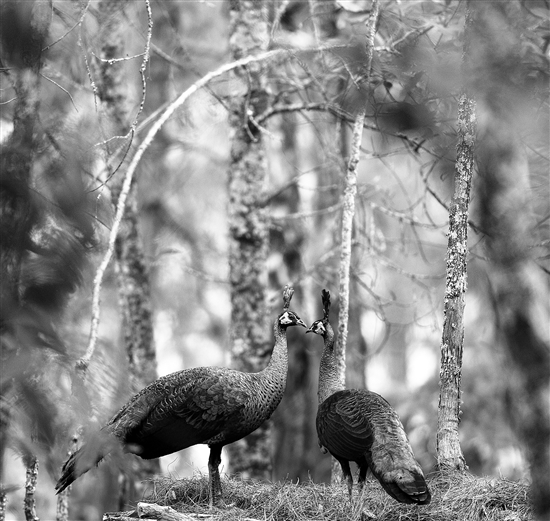 昨日,是第八个“世界野生动植物日”。春回大地时节,云南林间谷地中的绿孔雀正逐渐进入求偶繁殖期。位于元江中上游绿孔雀栖息地的巡护员,清晨5点就已到达绿孔雀栖息地附近,屏住呼吸,仔细聆听从各个种群领地传来的鸣叫声,以估摸今年有望繁殖的种群。在求偶季节,天蒙蒙亮时雄孔雀就开始鸣叫,向雌孔雀们表白。雌孔雀们听到大声呼唤后,从林中循着声音纷纷来到雄孔雀身边,大家聚在一起,觅食、嬉戏、啄食,相互间发出“咔咔”的交流声。 据了解,全球共有3种孔雀:绿孔雀、蓝孔雀和刚果孔雀。其中,分布于中国的只有绿孔雀一种,目前仅分布于云南省境内,种群数量555至600只,属于极度濒危物种,已被列为国家一级重点保护动物。与在公园里常见的蓝孔雀相比,绿孔雀在形态上有显著差异。绿孔雀头上羽冠簇形,颈部羽毛鳞状;蓝孔雀头上羽冠扇形,颈部羽毛丝状。绿孔雀胸颈部体羽主要为翠金属绿色,脸颊为黄色;蓝孔雀胸部颈部体羽主要为金属蓝色,脸颊为白色。蓝孔雀翅上覆羽有白色和黑色交替的蠹状斑,绿孔雀无斑纹,为蓝绿色。除尾屏外,绿孔雀雌雄差异较小,蓝孔雀雌雄差异较大。 绿孔雀曾经广泛分布于华夏大地,是中国文化中凤凰图腾的原型。绿孔雀也一直是云南的一张名片,世居云南南部的傣族人民更是模仿“孔雀开屏”时的优美姿态,创作了久负盛名的孔雀舞,传演至今。 近年来,云南加强对绿孔雀种群及栖息地的保护,启动人工繁育和野化放归项目,绿孔雀种群恢复和增长具有较大希望。本报记者 杨质高 通讯员 杨华 文 通讯员 熊王星 杨星 摄