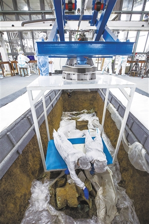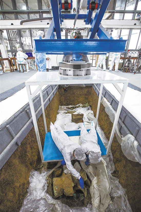 古蜀文明之光,再次闪耀于中华文明版图西南部。 黄金面具、青铜人像、青铜尊、玉琮、玉璧、金箔、象牙……20日,“考古中国”重大项目工作进展会在成都举行,通报了四川广汉三星堆遗址重要考古发现与研究成果。新发现的6座三星堆文化“祭祀坑”,目前已出土500余件重要文物。 “沉睡三千年,一醒惊天下。”曾在1986年震惊世界的三星堆遗址,以辉煌灿烂的新发现“再惊天下”。“新”发掘、“新”发现、“新”手段,一起来看三星堆里的“新”事。 新发掘 考古发现6座文化“祭祀坑” 地处成都平原东北部龙泉山脉西麓的广汉市,曾有一景点名叫三星伴月堆。后来考古发掘确证“三星伴月”所说的3个相连的土堆,就是三星堆古城的城墙。 这个古蜀文明的宝库,最早被发现于20世纪20年代。广汉真武村月亮湾一户村民在自家院前无意间发现了一大堆玉石,随后流入坊间,“广汉玉器”名噪一时。 1986年,考古工作者在此发现1、2号“祭祀坑”,出土珍贵文物1700余件。青铜大立人、青铜神树、贴黄金面罩的青铜人头像……文物之精美、风格之诡谲,超出了人们当时的认知范围。 从此,三星堆名扬天下。 此次新发现的6个“祭祀坑”位于1、2号“祭祀坑”旁。专家认为,目前这8个“祭祀坑”整体构成祭祀区,是古蜀王国专门用来祭祀天地、祖先,祈求国泰民安的场所。 “国之大事,在祀与戎。”从“祭祀坑”的情况,可以想见约3000年前的祭祀场面该是如何宏大与奢华。 新发现 已出土重要文物500余件 占地仅3.5平方米的5号“祭祀坑”一片金光闪闪——考古队员已从此处清理出多件金器和60余枚带孔圆形黄金饰片、数量众多的玉质管珠和象牙饰品。经专家初步判断,这些有规律的金片和玉器与黄金面具形成缀合,推测为古蜀国王举行盛大祭祀仪式时所用。 “出乎意料的是,此次还出土了一些闻所未闻、见所未见的青铜器,比如有些青铜尊附着有奇异诡谲的龙或牛的造型。”四川省文物考古研究院三星堆遗址工作站站长雷雨说。 在3号“祭祀坑”,记者看到了坑内铺满百余根象牙和上百件青铜器,包括青铜尊、青铜罍及独具风格的青铜人像、大面具等。 据介绍,6个“祭祀坑”平面均为长方形,规模在3.5平方米至19平方米之间。截至3月20日,3、4、5、6号坑内已发掘至器物层,7号和8号坑正在发掘坑内填土,已出土金面具残片、鸟型金饰片、金箔、眼部有彩绘铜头像、巨青铜面具、青铜神树、象牙、精美牙雕残件、玉琮、玉石器等重要文物500余件。 新手段 “黑科技”与“豪华阵容”助力 本次发掘工作协调国内多家科研机构和高校参与,形成考古、保护与研究联合团队。值得一提的是,考古工作者充分运用现代科技手段,建设考古发掘舱、集成发掘平台、多功能发掘操作系统,在多学科、多机构的专业团队支撑下,构成了传统考古、实验室考古、科技考古、文物保护深度融合的工作模式,实现了考古发掘、系统科学研究与现场及时有效的保护相结合,确保了考古工作高质量与高水平。 已经退休的四川省文物考古研究院陈德安研究员和陈显丹研究员站在新的发掘现场,回首当年亲历1、2号“祭祀坑”发掘的往事,感慨万千。他们告诉记者,当时的发掘现场就是一片田野,田野前面是砖厂,取土烧砖的工人就跟在后面,催着他们赶快发掘。只用两个月,就把1、2号坑发掘完毕了。 35年时光如水,早已换了人间。 如今的发掘现场,被大跨度钢结构大棚覆盖,里面数个通透的玻璃房子将新发现的“祭祀坑”罩住。这个装满各类设备的考古“发掘舱”可以控制温度、湿度,让人惊叹不已。 工作人员穿着“防护服”在古蜀国祭祀“圣地”开展“野外”考古,仿佛是在封闭的高科技实验室工作。在“考古舱”旁设有各种应急文物保护实验室和库房,各种先进设备一应俱全。 提升装备的科技含量并不是为了“炫”。三星堆遗址发掘总领队、四川省文物考古研究院院长唐飞告诉记者,在这样的“考古舱”里开展发掘工作,不仅能控制发掘现场的温度、湿度,还能减少工作人员带入现代的微生物、细菌等。 不仅有科技力量的“加持”,专家“阵容”也堪称“豪华”。 中国社会科学院考古研究所、北京大学、四川大学等多家科研机构和高校纷纷加入此次考古发掘工作。在现场忙碌的,是一个包括文物保护技术、体质人类学、动物学、植物学、环境学、冶金学、地质学、化学、材料学等在内的多学科交叉创新研究团队。 正是这样的齐心聚力,大家有了许多意想不到的发现,比如古丝绸的“身影”。“我们在4号‘祭祀坑’的黑色灰烬中提取到了肉眼不可见的丝绸制品残留物,这是非常重要的发现。”唐飞说。 甚至连消防队员也被邀请参与研究。 三星堆“祭祀坑”的文物大多有烧灼痕迹,考古学家推测这是一种“燎祭”方式,即将青铜器、象牙等祭品燃烧后填埋。这种“燎祭”是在坑外燃烧,还是坑内燃烧?燃烧最高温度是多少?……这些谜题有待消防队员和考古学家合作揭晓答案。 四川大学历史文化学院副院长李映福说:“此次发掘实现了机制上的创新,多家机构共同参与,形成高水平的发掘团队,构建了覆盖面广阔的多学科交叉研究团队,实现了考古发掘现场与文物保护研究的无缝衔接。” 意义 有助进一步揭示三星堆文化全貌 本次三星堆考古发现对于我国考古工作的开展有何重