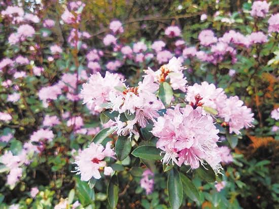 3月的苍山,春光明媚。那些平日羞羞答答躲藏在灌木丛中的“碎米花”杜鹃,早已浩浩荡荡地盛开了! 碎米花杜鹃,也称碎米杜鹃、毛叶杜鹃,主要产于云南、贵州等地;一般生长在海拔1000米—2500米的山坡灌木丛、松林或次生林边缘,树干高约2米左右。因为花蕾和花朵酷似“米花”,人们形象地把它称为碎米花杜鹃。其花期从春节前后延续至5月。也因为同灌木、松树等植物伴生,成片成片碎米花杜鹃盛开的场景非常少见。 行走在苍山的小道上,穿梭在春光明媚的密林间,碎米花杜鹃就盛开在眼前、在周围、在触手可及的天地里。紫的、粉的、白的,它们,似乎一瞬间把平时隐藏在山林中的美好,在春天的三月,惊艳地怒放在目光所及的视野里。 本报记者 秦蒙琳 通讯员 洪永忠 摄影报道