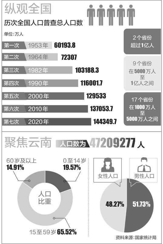 我国是世界上人口最多的国家,人口问题始终是一个全局性、战略性问题。这次普查结果显示出哪些新变化、新特征、新趋势?蕴含着哪些机遇和挑战? “几升几降”折射人口发展态势 国务院第七次全国人口普查领导小组副组长、国家统计局局长宁吉喆介绍,第七次全国人口普查结果全面详实地反映了当前我国人口的基本情况及10年间人口的发展变化。 “我国人口的主要变化反映了我国经济社会和人口发展的历史进程,反映了推动高质量发展、决胜全面建成小康社会的实践历程,也符合人口自身发展趋势和人口与经济社会相互作用的客观规律。”宁吉喆说。 北京大学人口研究所所长陈功指出,一方面,总人口继续增长,流动人口持续增长,人力资本不断提升;另一方面,性别比降低,家庭户规模下降。“几升几降”折射我国现代化发展进程中,人口仍处于具有较强活力和较大回旋余地的阶段。 人口红利持续释放支撑高质量发展 人口是经济社会持续发展的重要支撑。从人口普查的主要结果看,2010年至2020年间我国人口增长出现放缓趋势,这是否意味着我国“人口红利时代”就要结束? “我国劳动力资源依然丰富,人口红利继续存在。”宁吉喆指出。 普查数据显示,我国16岁至59岁劳动年龄人口为8.8亿人,劳动力人口资源仍然充沛,人口平均年龄为38.8岁,人口红利继续存在。 与此同时,人才红利持续释放,成为支撑我国高质量发展的强大动能。 国务院发展研究中心社会发展研究部研究员冯文猛说,我国经济从高速增长阶段转向高质量发展阶段,质量改善支撑型的人口红利作用更重要。我国现有相当大规模的劳动人口,通过提升国民教育水平和全民健康水平,不断提高人口素质,人才红利的新优势正逐步显现。 事实上,过去10年间我国人口增加了7206万人,增长规模与前一个10年增加7390万人相比,略有下降,但基本持平。 宁吉喆说,目前我国育龄妇女3亿多人,每年能够保持1000多万的出生人口规模;生育政策取得积极成效,随着“单独二孩”“全面两孩”政策的实施,出生人口数量快速回升;近10年我国经济社会快速发展,人民生活水平不断提高,医疗卫生条件大幅改善等积极因素将支撑人口总量保持增长。 当前,我国人口总量仍居世界第一,预计在未来一段时间内,我国人口总量会保持在14亿人以上。 人口总量持续增长将为我国超大规模国内市场优势提供强有力支撑。 “促进全体人民共同富裕,14亿多人释放的巨大内需潜力,助推构建以国内大循环为主体、国内国际双循环相互促进的新发展格局。”冯文猛说。 促进人口长期均衡发展 一面是人口基数大、人口众多的基本国情没有改变,一面是人口增长放缓,需要采取措施促进人口长期均衡发展;一面是劳动力资源依然丰富,一面是劳动年龄人口逐年缓慢减少,经济结构和科技发展需要调整适应;一面是人口素质不断提高,一面是大学生就业压力加大,产业转型升级步伐需要加快;少儿人口和老年人口比重双双上升,凸显“一老一小”问题重要性;城镇化和经济集聚的趋势性变化,也对提高城镇化质量、促进区域协调发展提出新的要求…… 普查数据反映的一些趋势性变化,既对我国经济社会高质量发展提出新的要求,也与我们每个人的切身利益息息相关。 普查数据显示,2020年我国0岁至14岁少儿人口数量达到25338万人,比2010年增加了3092万人,比重上升1.35个百分点。 宁吉喆说,我国出生人口中“二孩”占比由2013年的30%左右上升到2017年的50%左右,但总和生育率下降,2020年我国育龄妇女总和生育率为1.3,已经处于较低水平。 陈功建议,如何为生育、养育、教育创造更加友好的环境,让“生而无忧”,是下一步需要各方切实解决的问题。 普查结果显示,我国60岁及以上人口的比重达到18.70%,其中65岁及以上人口比重达到13.50%。2010年至2020年,60岁及以上人口比重上升了5.44个百分点,65岁及以上人口上升了4.63个百分点。 “人口老龄化是社会发展的重要趋势,也是今后较长一段时期我国的基本国情,既是挑战也存在机遇。”宁吉喆说。 宁吉喆分析,人口老龄化将减少劳动力供给数量、增加家庭养老负担和基本公共服务供给的压力,但也会促进“银发经济”发展,扩大老年产品和服务消费,有利于推动技术进步。“在我国60岁及以上人口中,60岁至69岁的低龄老年人口占55.83%,这些低龄老年人大多具有知识、经验、技能的优势,身体状况还可以,发挥余热和作用的潜力较大。”他说。 “十四五”规划和2035年远景目标纲要将积极应对人口老龄化上升为国家战略。纲要明确,制定人口长期发展战略,优化生育政策,以“一老一小”为重点完善人口服务体系,促进人口长期均衡发展。 “积极应对人口老龄化是一项战略性、全局性、综合性的系统工程,需要做好长期的制度安排和有力的政策落实,与此同时,充分调动政府、市场、社会、家庭和包括老年人在内各方面力量的积极性,形成积极应对、全民行动的良好态势。”南开大学人口与发展研究所教授、中国人口学会副会长原新说。 新华社记者 魏玉坤 安蓓 邹多为