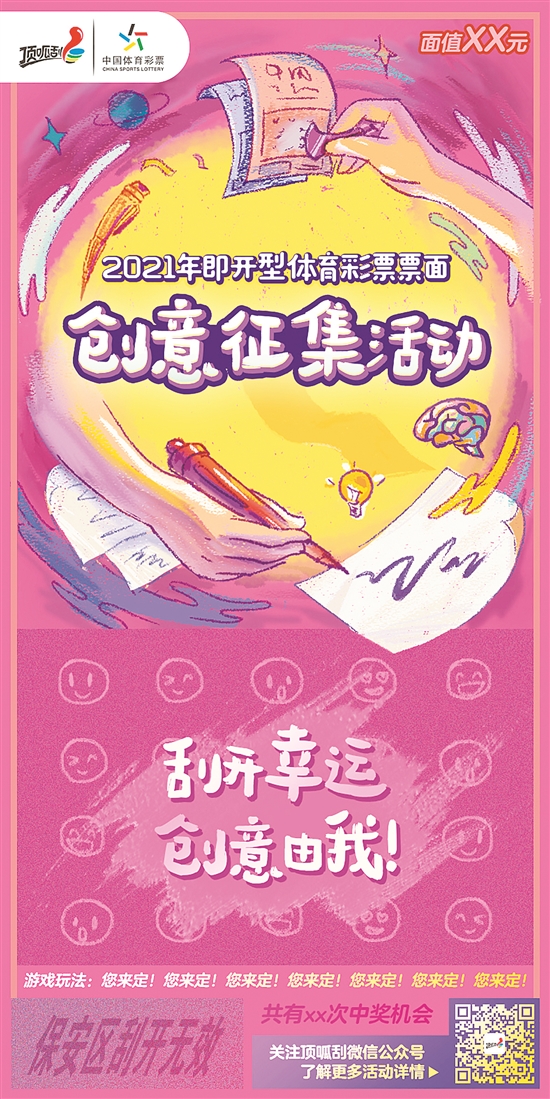 5月31日起,由中国体育彩票发起的2021年即开型体育彩票票面征集活动正式来袭。你提创意,我来实现,一起“定制”体彩即开票,更有机会分享10万元奖品。 此次征集活动将面向社会开展,是体彩即开票自2008年上市以来首次发起的大型征集活动。旨在汇聚社会各界人士的创意,并将想法变为现实,让每个人都有机会成为即开票的设计师,最终在全国范围内发行。 体彩贴心地准备了多平台、多个活动入口。参与者可通过中国体彩网、“中国体育彩票”App或微信小程序、“体彩顶呱刮”微信服务号、云南体彩等平台了解活动详情、下载专用设计模板及投稿。 本次活动征集日期为5月31日至7月15日,参与者上传“产品主题”“作品名称”“创意描述”等3项内容至以上平台、活动入口即可参与。产品主题可选公益责任、体育竞技、社会热点、文化生活、好运惊喜、人文历史、自然生物7大方向,也可以自制主题。主题范围广泛,创意不设限,给参与者极大的发挥空间。 中国体育彩票邀你一起,让想法、创意、设计跃然纸上,将爱心送往大江南北。 本报记者 刘阳明