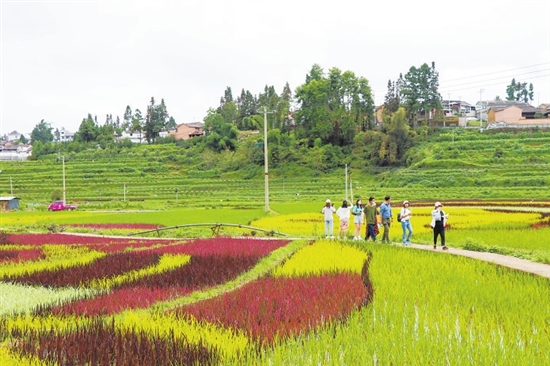 时下,腾冲市清水乡三家村中寨司莫拉佤族村,一幅由彩色稻组成的画作精彩亮相。站在司莫拉佤族村景区观景台上,放眼望去,由粉红、黄、白、紫、黑、绿6种颜色组成的水稻图案尽收眼底。 据腾冲市农业农村局的一名负责人介绍,为丰富司莫拉佤族村的旅游景观,当地农业部门今年首次尝试种植彩色水稻。彩色水稻产量不算高,但极具观赏性和营养价值,既能吸引游客前来观赏,也能够增加农业附加值,使农民增收。 司莫拉佤族村共有连片彩色稻田50亩,以彩稻为颜料,以大地为画布,以神话传说为背景,勾勒出形态各异的图案,描绘出一幅五彩斑斓的美丽画卷,为司莫拉佤族村3A级景区再添一景。 司莫拉佤族村种植有漂亮彩稻的消息传出后,吸引了许多腾冲市民关注。连日来,许多人到此拍照。“彩色水稻田的打造将发展水稻生产和乡村旅游相结合,以打造‘网红’打卡景点为抓手,使其成为司莫拉佤族村一道亮丽风景的同时,带动当地群众增收。”清水乡政府一名工作人员说。 本报记者 崔敏 通讯员 段生绍 杨焱淼 摄影报道
