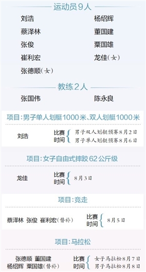 本次东京奥运会云南共有9名(含2名替补)运动员和2名教练员入选中国代表名单,他们将参加田径、皮划艇、摔跤3个项目。披荆斩棘、乘风破浪,让我们一起为云岭健儿加油助威!