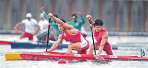 刘浩(左)、郑鹏飞在男子1000米双人划艇预赛中 新华社记者 费茂华 摄